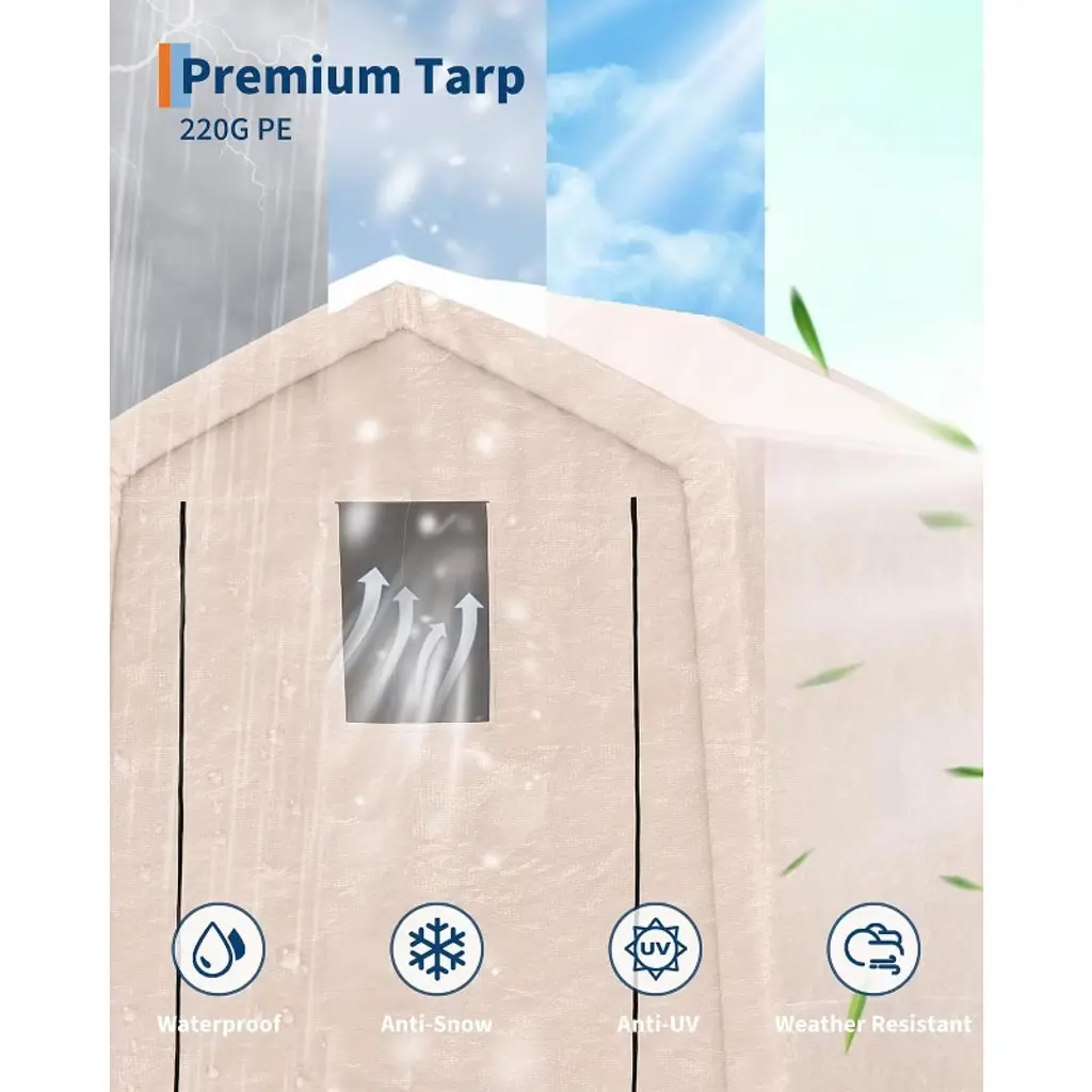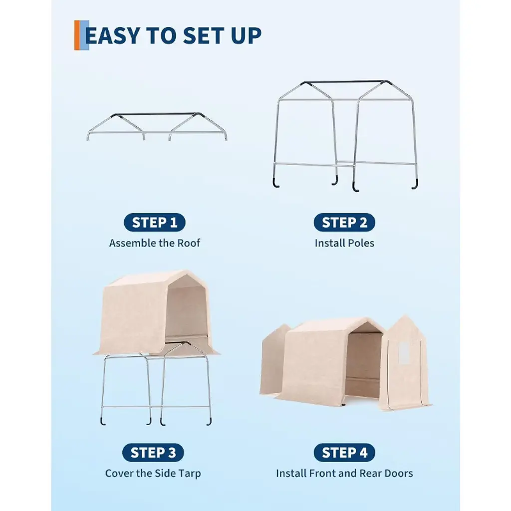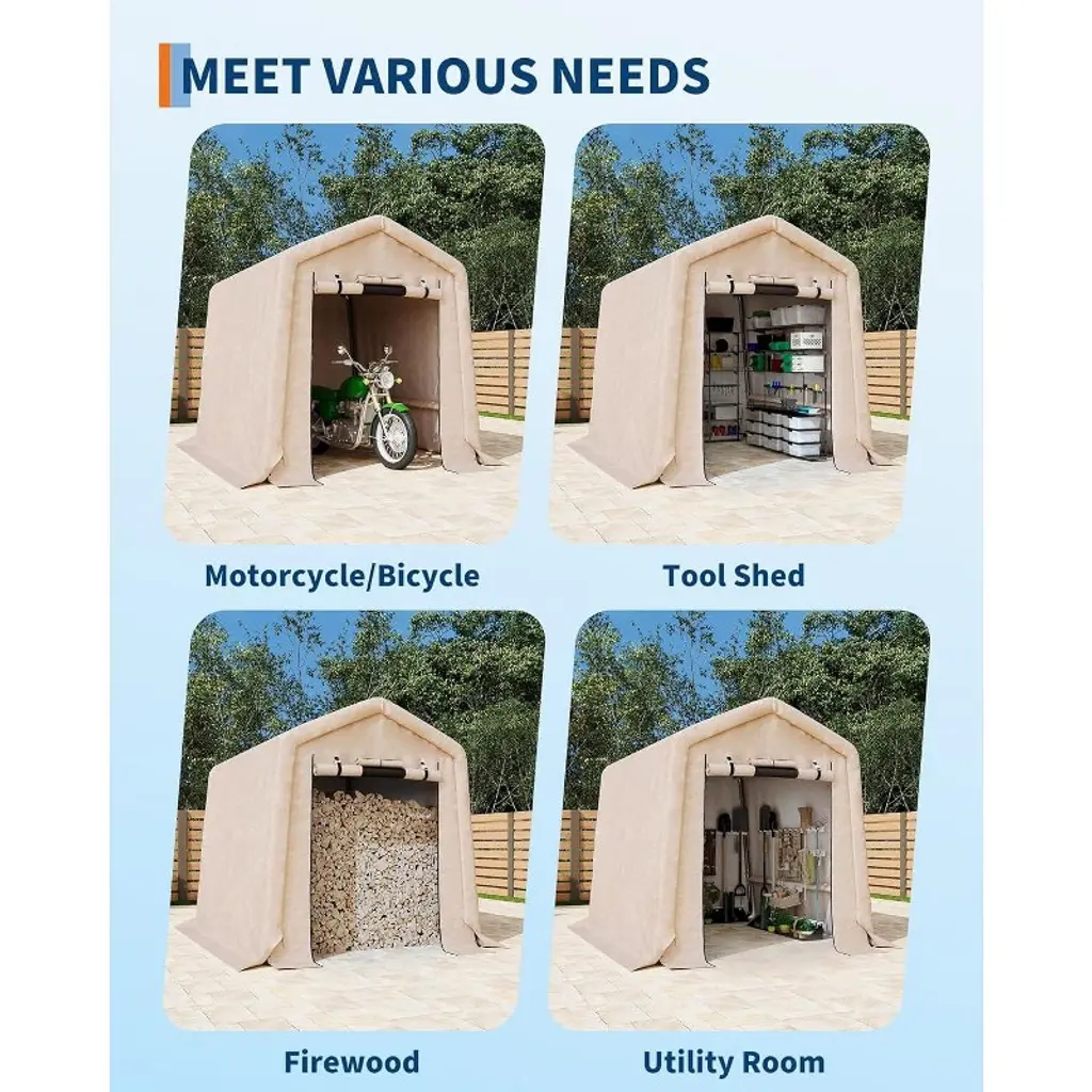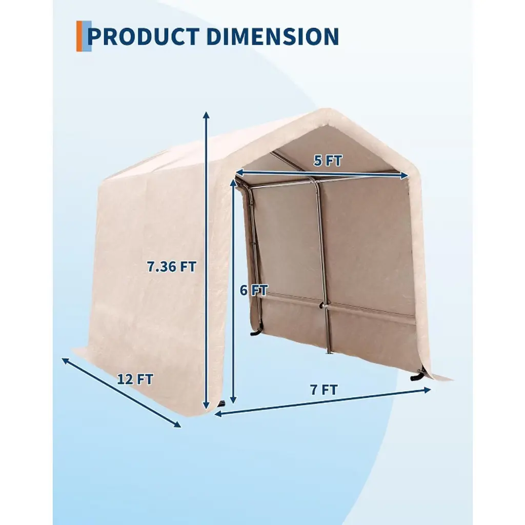 Acekool 7X12ft Outdoor Portable Storage Shed, Roll-up Door, Heavy-duty Waterproof Pe Tarp, Uv-resistant Shelter For Tools, Garden, Motorcycles, Beige