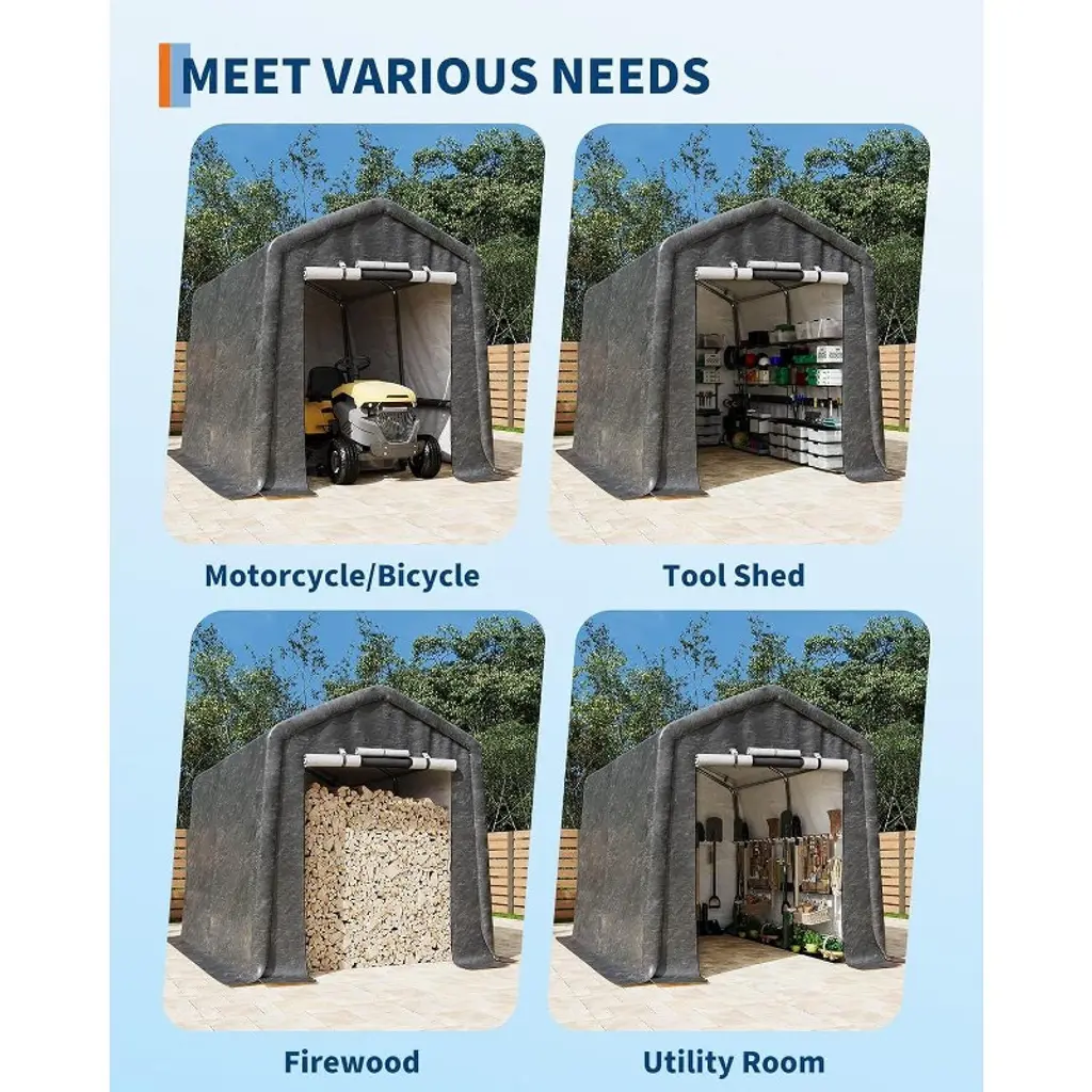 Acekool 7X12ft Outdoor Portable Storage Shed, Roll-up Door, Heavy-duty Waterproof Pe Tarp, Uv-resistant Shelter For Tools, Garden, Motorcycles, Gray