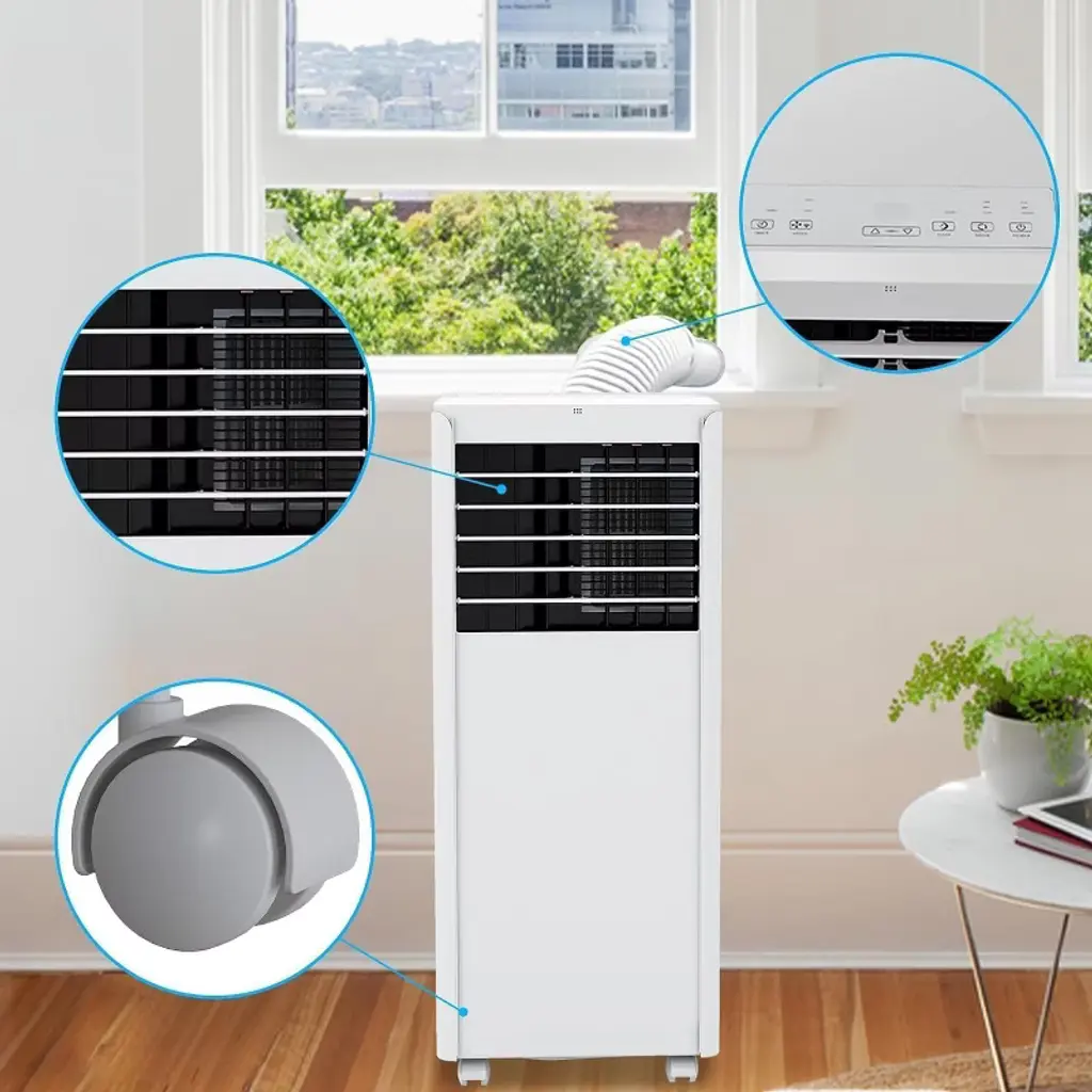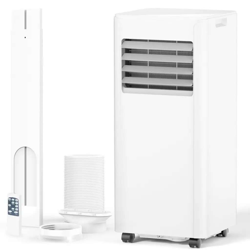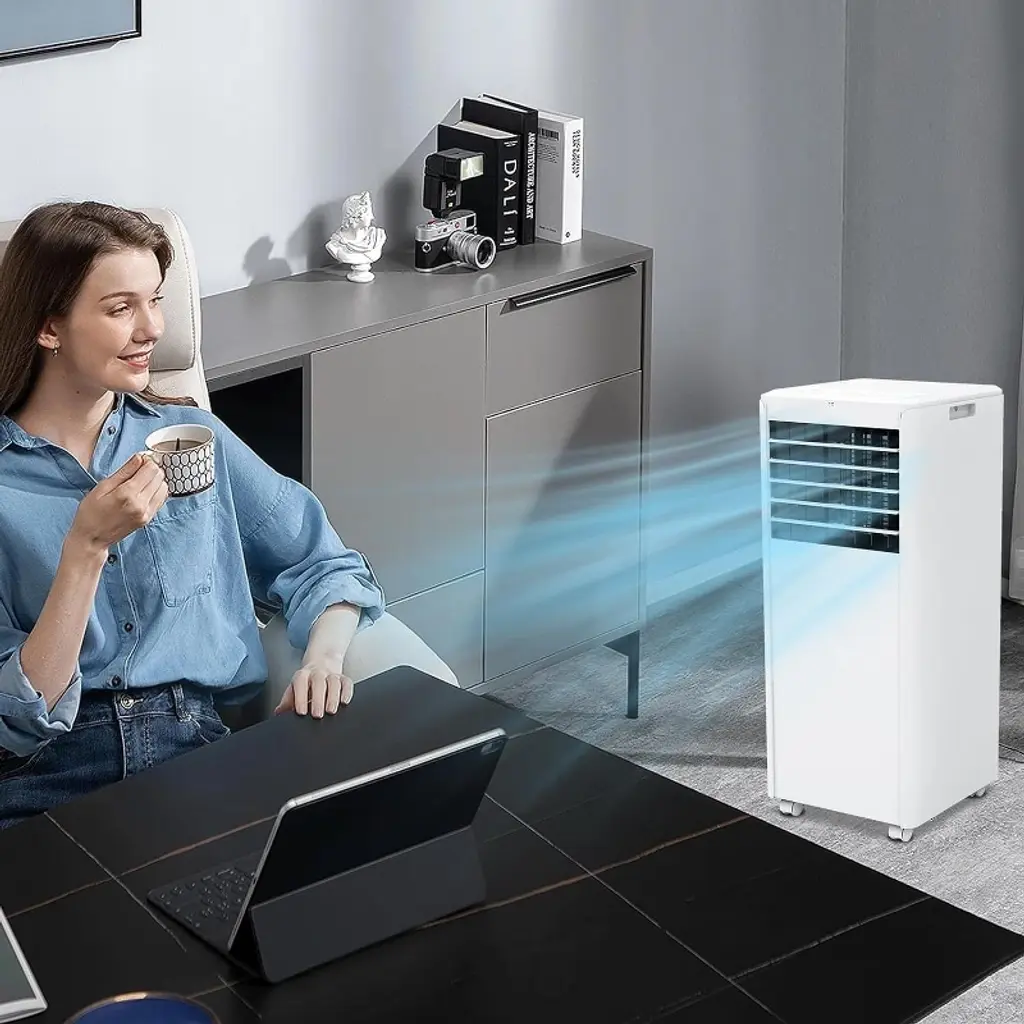 The Acekool 8,000 BTU Portable Air Conditioner provides three climate solutions in one convenient unit. Cool, dehumidify or circulate air in spaces up to 350 sq.ft with quiet, efficient operation. Key Features: 3-in-1 functionality (cool, dry, fan modes) 8,000 BTU cooling capacity for small rooms Whisper-quiet 51 dB sleep mode Easy mobility with 360° casters Complete installation kit included Technical Details Coverage: Up to 350 sq.ft Temperature Range: 59°F-88°F Noise Level: As low as 51 dB Included Accessories: Remote control, window kit, exhaust hose Filter Type: Washable/reusable