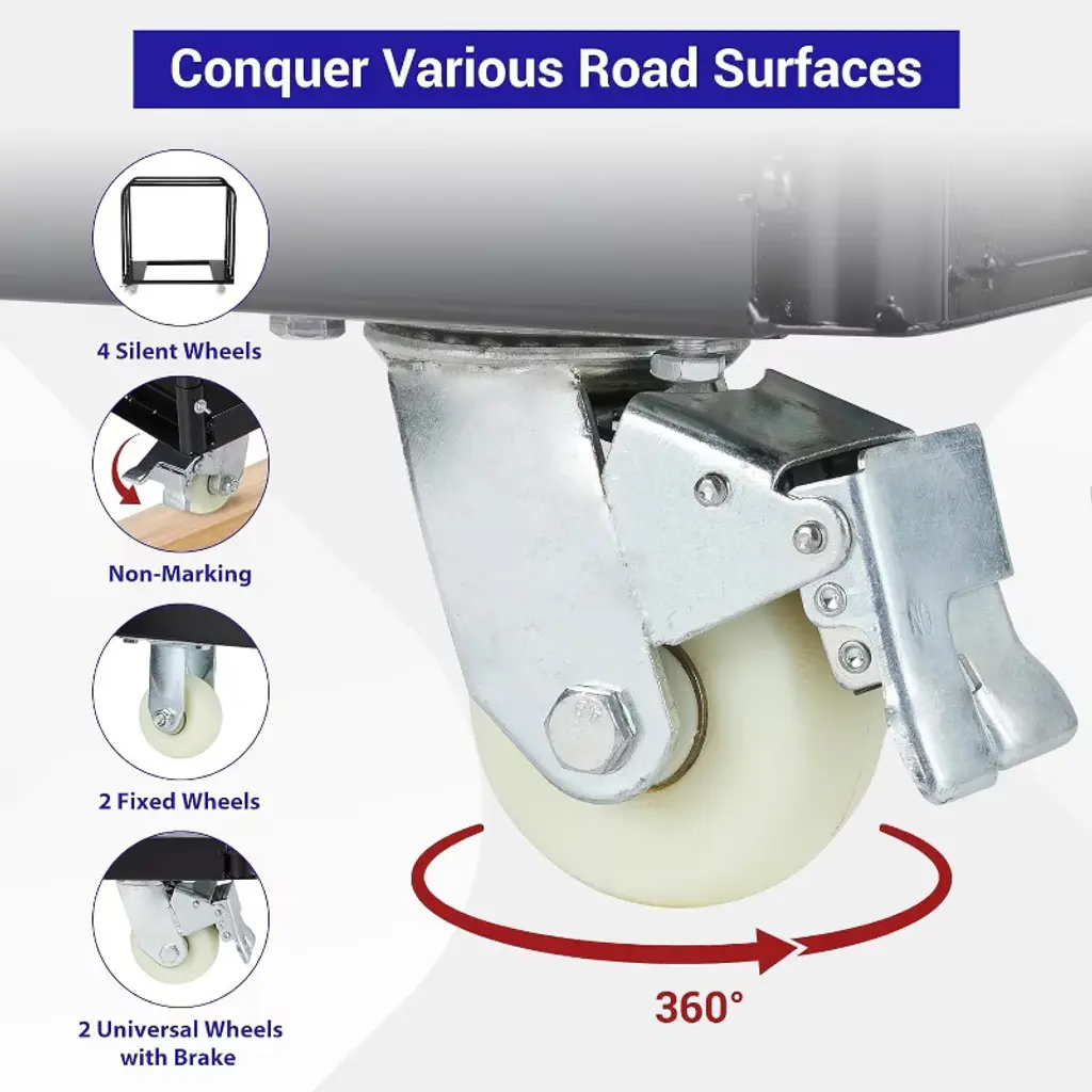 The Acekool Steel Drywall Cart is a worksite essential designed to take the effort out of moving heavy sheet materials and bulky items. With a platform built to handle substantial loads, this cart is ideal for drywall, plywood, panels, and many other large construction or storage materials. The open base and side rails make loading and unloading fast and simple, while the steel frame gives you confidence during big projects. Key features include four silent wheels—two with full rotation and two fixed—that provide smooth, quiet movement on a range of surfaces. The cart is simple to put together, allowing for quick setup even if you’re working solo. The protective painted finish keeps the steel frame looking fresh and shields it from wear, so you can rely on this cart for both daily hauling and long-term tasks. Built for versatile use, the Acekool drywall cart is ready for tasks in warehouses, offices, and busy job sites. Use it to move sheetrock, lumber, folding tables, or even mattresses around your space. With strength, maneuverability, and adaptability, it’s a smart addition to any storage and organization routine.