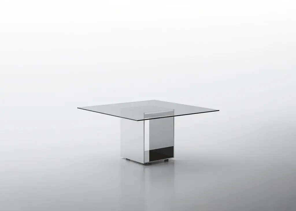 Acerbis Judd Large Square Table In Transparent Glass Top With Shiny Steel Base
