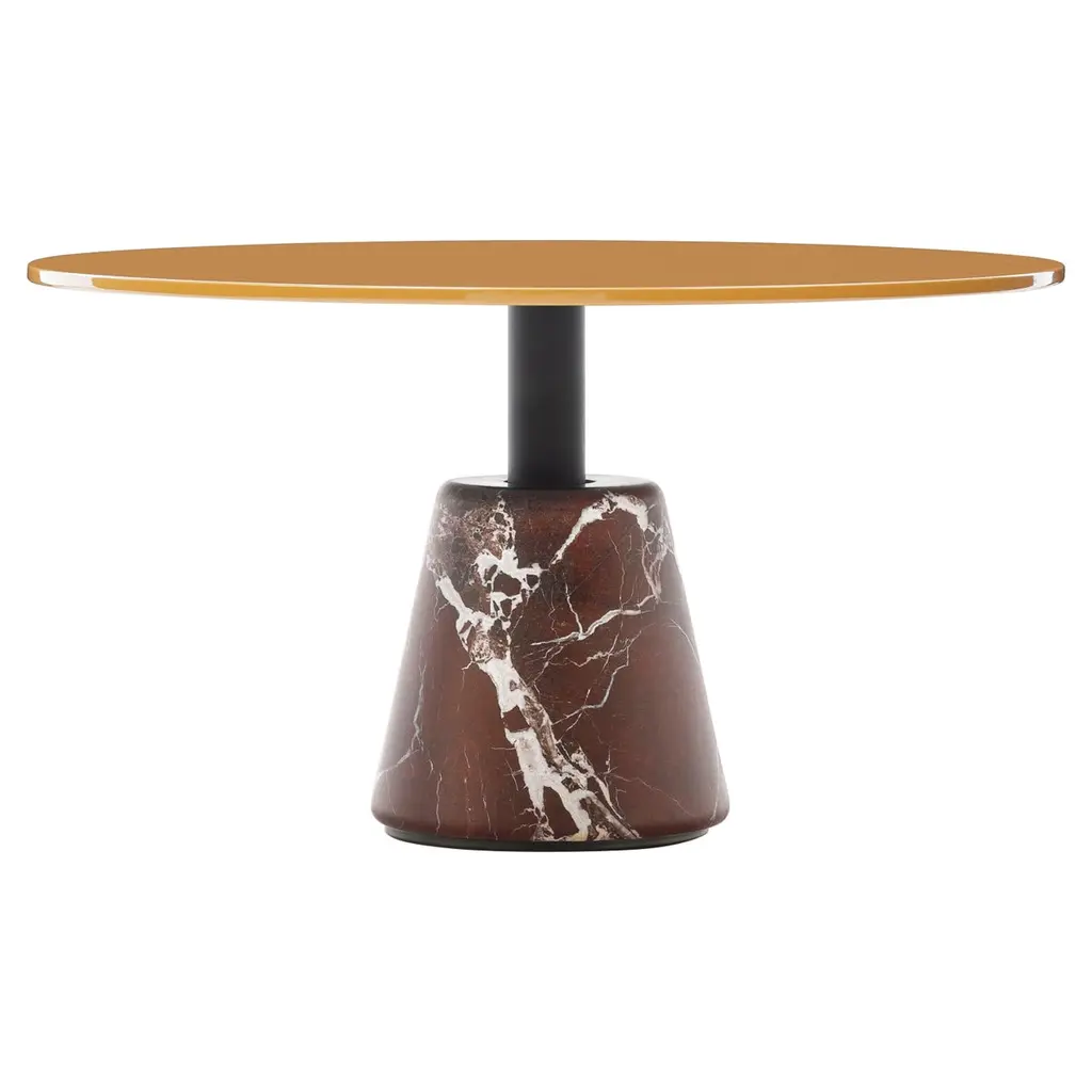 Designed in 1983 by Giotto Stoppino and Lodovico Acerbis, the Menhir collection is inspired by the stone monoliths of the British Isles and France, which are the archetype of the column.This research gave rise to the design of a base consisting of a steel column and marble drums with different finishes and shapes placed on top of each other.The current version maintains the drums’ shape but has more contemporary finishes, with matt marble and new lacquered tops in colours that recall the gritty imagination of the late 60s and evoke the company’s heritage.Base units and topsSystem of low tables and consolles feature versatility, combination of various shapes, sizes and materials.The base unit is made of epoxy powder coated steel in black matt finish, available in the following heights:36.2 - 42.5 - 48.8 for tables and 80.2 for consoles.The tops in the Ø 80, 100, 120 cm size and 180x40 consolles are made of medium density wood fibre, 20 mm thick, worked on the edge. The tops are available in glossy lacquered finishes in burgundy, pink, dark green, mustard yellow, brick red, clay, white and black or in the special inlaid and brushed open grain veneer, in black ash and dark stained walnut.The drums have five different sizes and weights and ring the column, giving the table the necessary weight to guarantee stability and create supporting structures with a differentiated design. Monolithic elements are available in matt marble, in the Carrara Statuario white, Marquinia black, Levanto red and Alpi green finish, a chromatic variety that reveals a typically Italian tradition.Lodovico Acerbis was born in Albino, Bergamo in 1939 and graduated in Economics and Business in Milan. In 1963 he joined his father’s company with the aim of creating design furniture by applying the most advanced technologies and the best materials. Founded in 1870, as a carpentry workshop, the company under his direction reached industrial dimensions and established itself as a leading company in the sector. Lodovico Acerbis combined his work as an industrialist with that of a designer, producing some of the most significant creations of Italian production, often signed together with Giotto Stoppino, with whom he created a fervent creative partnership.Born in Vigevano in 1926, Giotto Stoppino studied Architecture at Milan and Venice. Since 1953 he has devoted himself almost entirely to architecture, founding together with Gregotti and Meneghetti one of the most culturally committed architects’ offices. Since 1968, with his own independent studio, he has dedicated himself to design. He was president of ADI for the three-year period 1982-1985 and president of the Compasso d’Oro award in 1984. His works are in the Museum of Modern Art in New York, in the Victoria and Albert Museum in London, in the Museum für angewandte Kunst in Munich, in the Museum of Contemporary Art, Chicago and the City-Hall in Shanghai.Additional information:Material: Steel, wood, marbleTop finish: Glossy lacquered dark green LL22Base finish: Levanto red marble MR06Stand finish: Matt painted blackDimensions: Ø 100 x 42.5 H cmAvailable in other finish options: Glossy lacquered mustard yellow LL23, Glossy lacquered bordeaux LL20, Glossy lacquered pink LL21, Glossy lacquered brick red LL24, Glossy lacquered white SW LL09, Glossy lacquered clay LL15, Glossy lacquered black LL06, Glossy lacquered sand LL12, Glossy lacquered linen LL10, Glossy lacquered white LL02, Glossy lacquered navy blue LL25, Black ash ES58, Dark stained walnut ES59, Carrara statuario white marble MR04, Marquinia black marble MR05, Alpi green marble MR07Available in other size options: Ø80x36.2, Ø100x36.2, Ø120x36.2, Ø80x42.5, Ø120x42.5, Ø80x48.8, Ø100x48.8, 180x40x80.2Available in various other options
