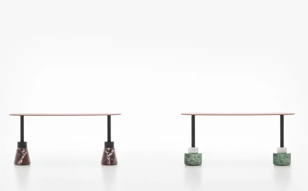 Designed in 1983 by Giotto Stoppino and Lodovico Acerbis, the Menhir collection is inspired by the stone monoliths of the British Isles and France, which are the archetype of the column.This research gave rise to the design of a base consisting of a steel column and marble drums with different finishes and shapes placed on top of each other.The current version maintains the drums’ shape but has more contemporary finishes, with matt marble and new lacquered tops in colours that recall the gritty imagination of the late 60s and evoke the company’s heritage.Base units and topsSystem of low tables and consolles feature versatility, combination of various shapes, sizes and materials.The base unit is made of epoxy powder coated steel in black matt finish, available in the following heights:36.2 - 42.5 - 48.8 for tables and 80.2 for consoles.The tops in the Ø 80, 100, 120 cm size and 180x40 consolles are made of medium density wood fibre, 20 mm thick, worked on the edge. The tops are available in glossy lacquered finishes in burgundy, pink, dark green, mustard yellow, brick red, clay, white and black or in the special inlaid and brushed open grain veneer, in black ash and dark stained walnut.The drums have five different sizes and weights and ring the column, giving the table the necessary weight to guarantee stability and create supporting structures with a differentiated design. Monolithic elements are available in matt marble, in the Carrara Statuario white, Marquinia black, Levanto red and Alpi green finish, a chromatic variety that reveals a typically Italian tradition.Lodovico Acerbis was born in Albino, Bergamo in 1939 and graduated in Economics and Business in Milan. In 1963 he joined his father’s company with the aim of creating design furniture by applying the most advanced technologies and the best materials. Founded in 1870, as a carpentry workshop, the company under his direction reached industrial dimensions and established itself as a leading company in the sector. Lodovico Acerbis combined his work as an industrialist with that of a designer, producing some of the most significant creations of Italian production, often signed together with Giotto Stoppino, with whom he created a fervent creative partnership.Born in Vigevano in 1926, Giotto Stoppino studied Architecture at Milan and Venice. Since 1953 he has devoted himself almost entirely to architecture, founding together with Gregotti and Meneghetti one of the most culturally committed architects’ offices. Since 1968, with his own independent studio, he has dedicated himself to design. He was president of ADI for the three-year period 1982-1985 and president of the Compasso d’Oro award in 1984. His works are in the Museum of Modern Art in New York, in the Victoria and Albert Museum in London, in the Museum für angewandte Kunst in Munich, in the Museum of Contemporary Art, Chicago and the City-Hall in Shanghai.Additional information:Material: Steel, wood, marbleTop finish: Glossy lacquered brick red LL24Base finish: Marquinia black marble MR05, Levanto red marble MR06Stand finish: Matt painted blackDimensions: 180 W x 40 D x 80.2 H cmAvailable in other finish options: Glossy lacquered bordeaux LL20, Glossy lacquered pink LL21, Glossy lacquered dark green LL22, Glossy lacquered mustard yellow LL23, Glossy lacquered white SW LL09, Glossy lacquered clay LL15, Glossy lacquered black LL06, Glossy lacquered sand LL12, Glossy lacquered linen LL10, Glossy lacquered white LL02, Glossy lacquered navy blue LL25, Black ash ES58, Dark stained walnut ES59, Alpi green marble MR07, Carrara statuario white marble MR04Available in other size options: Ø80x36.2, Ø100x36.2, Ø120x36.2, Ø80x42.5, Ø100x42.5, Ø120x42.5, Ø80x48.8, Ø100x48.8Available in various other options