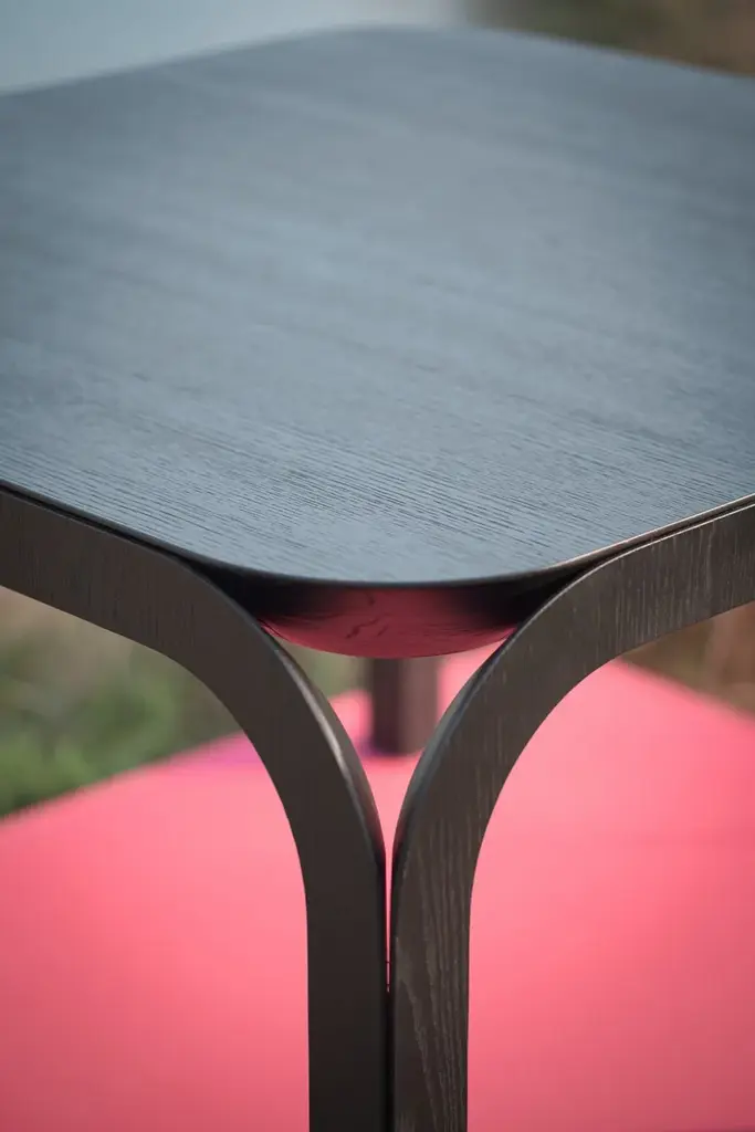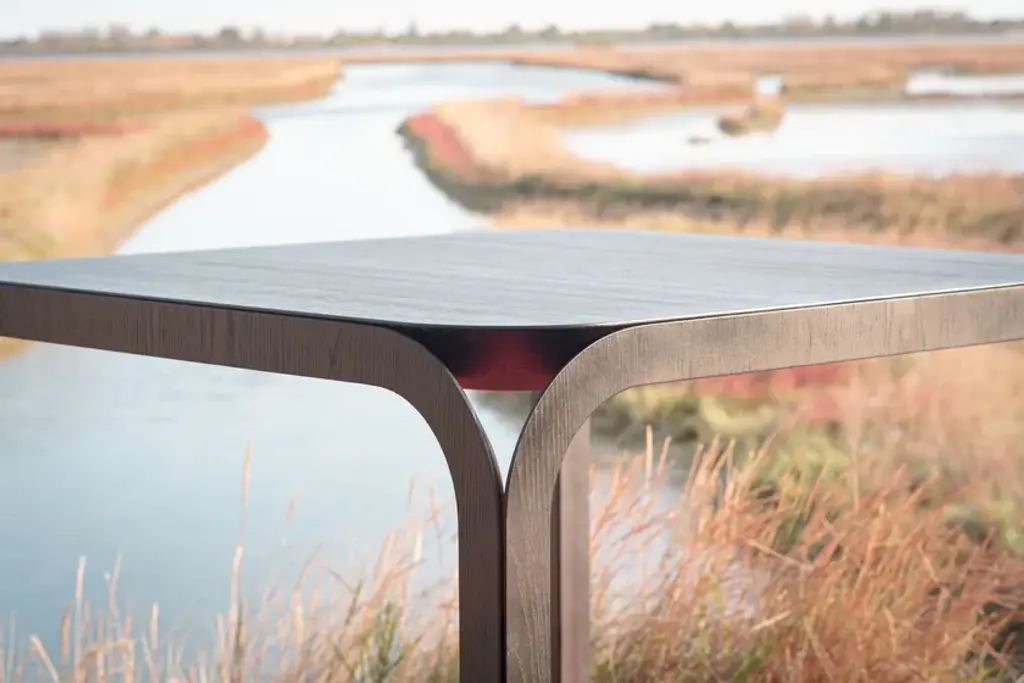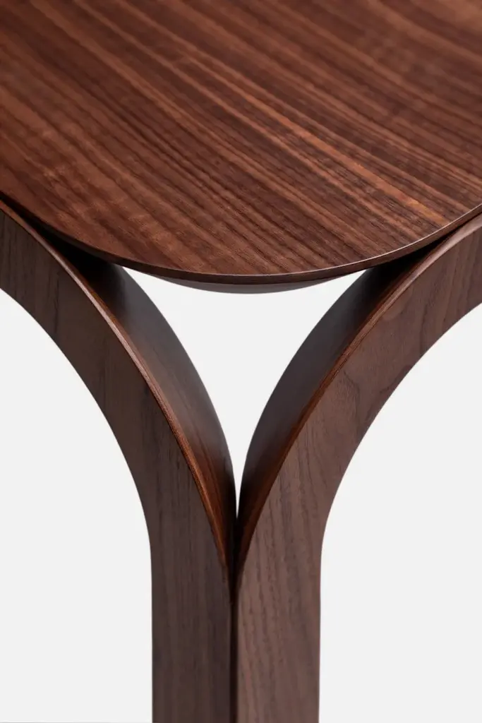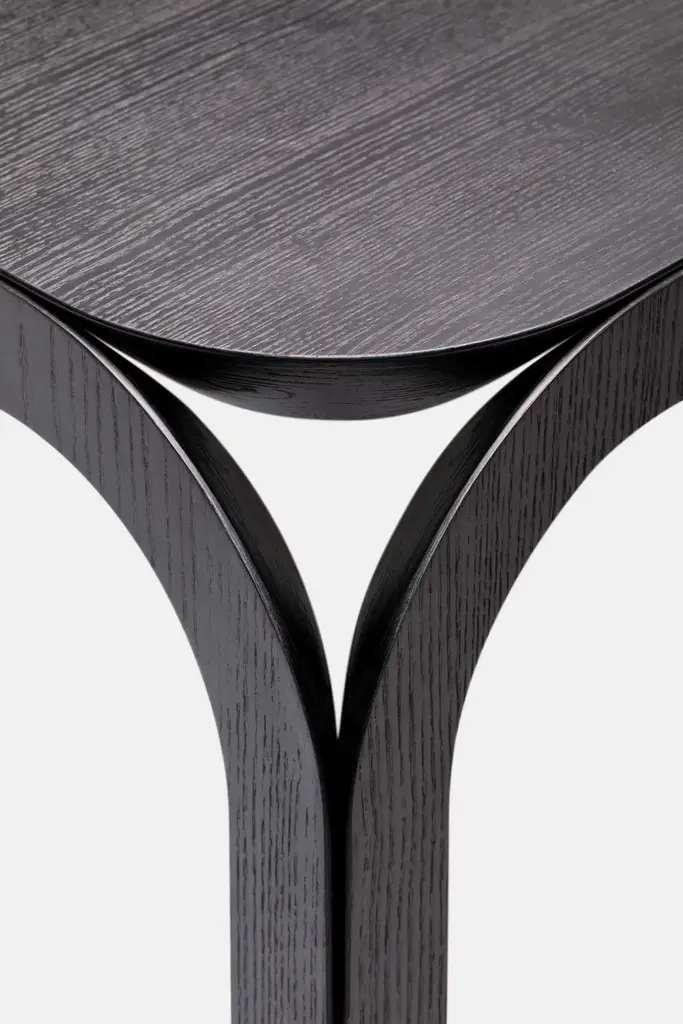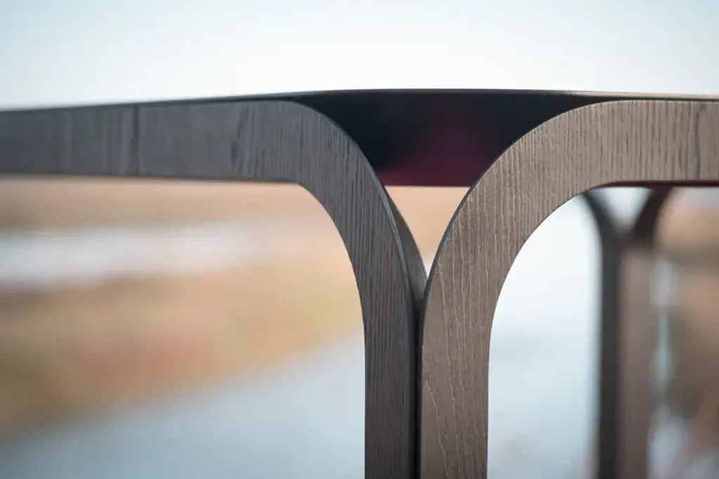 Acquabella is a solid wood table designed by Viviana Degrandi.The flow of the water, from the source to the city, and the effect of time over the course of the centuries: the Roman aqueduct captured in its majestic formal elegance, between technological pragmatism and the archaeology of memory.Imposing and sophisticated works of hydraulic engineering, the Roman aqueducts have been described as the greatest manifestation of Rome’s grandeur: Acquabella, the work by Milanese designer Viviana Degrandi for MEDULUM, borrows their arched structure and transforms it into the key detail of a table which is minimalist in form, but at the same time highly evocative.Acquabella is a furniture design born of the designer’s long investigation on the topic of water, with its manifold meanings and strong symbolic references to the world of emotions and the passage of time.Each leg, composed of two parallelepipeds of triangular cross section, separates into two arches near the surface, delineating an arcade structure which gently embraces the perimeter of the upper part of the table.The aesthetic and structural linchpin of the design, this subdivision generates an unexpected visual inlay between solids and voids – further highlighted by the curved and chamfered thicknesses of the supporting elements and the tabletop – able to impose rhythm, dynamism and lightness on the piece of furniture in its entirety. The woodgrain, highlighted by the single-colour finish, amplifies the textural aspect of the table and the architectural suggestiveness of the object itself, minimalist while at the same time iconic.MATERIALSSolid wood in veneered essence, solid honeycomb veneered.FINISHES 01. Oak02. Canaletto walnut03. Italian walnut04. Black painted open-pore ash