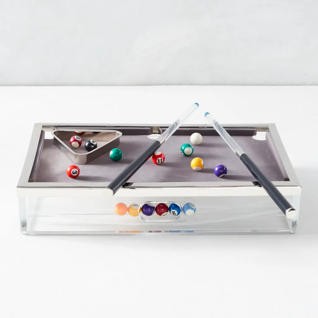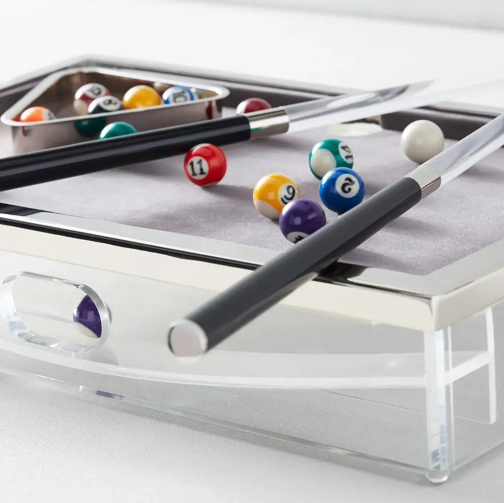 Win the holiday gifting game with our Acrylic Tabletop Pool Table. Modern look, traditional game, party-ready scale. Z Gallerie exclusive