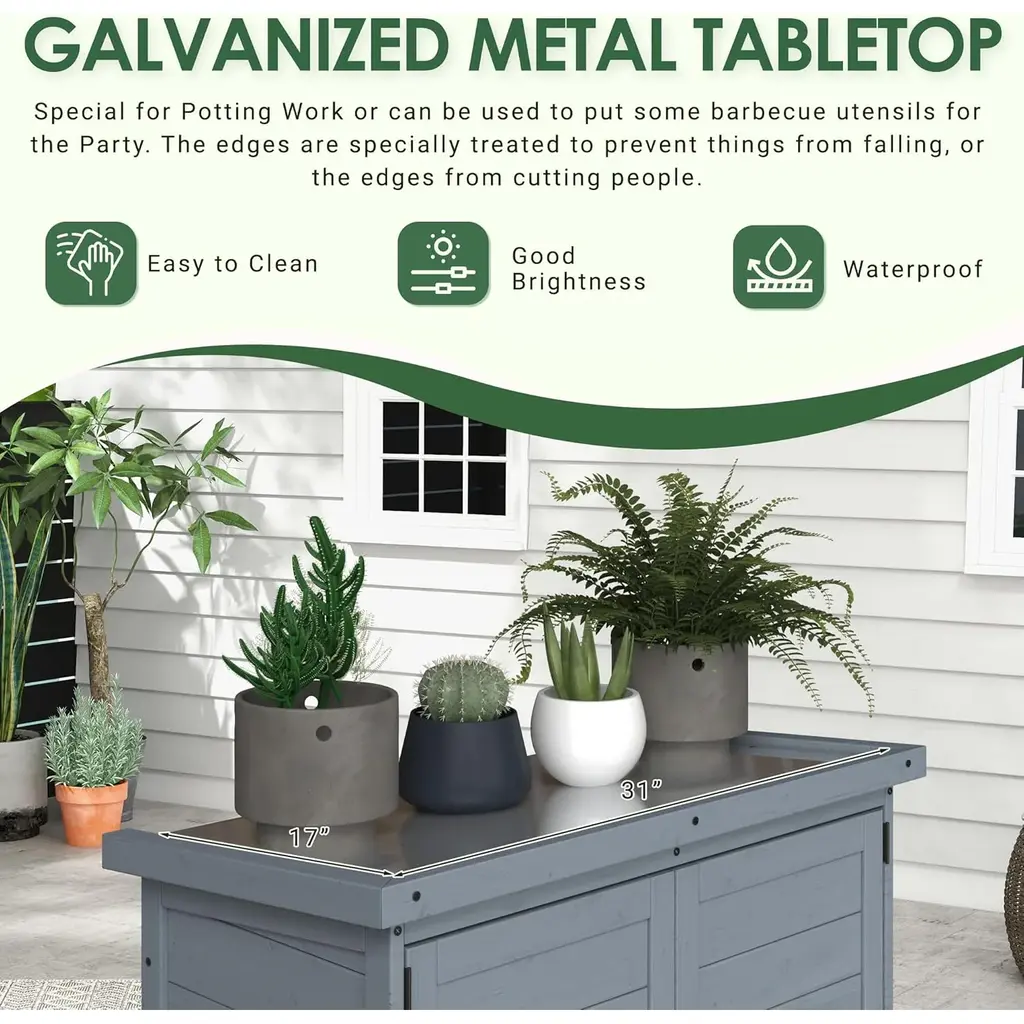 Discover the perfect multi-functional storage solution! Our storage cabinet is ideal for organizing indoor clutter, storing garden potting tools, or serving as a handy accessory for your BBQ parties. Featuring a galvanized metal tabletop with safety edges, and removable shelves for flexible storage, it ensures all your tools and supplies are neatly arranged. Easy to install with comprehensive guides and video tutorials, plus expert remote assistance available whenever you need it.Item Features:
