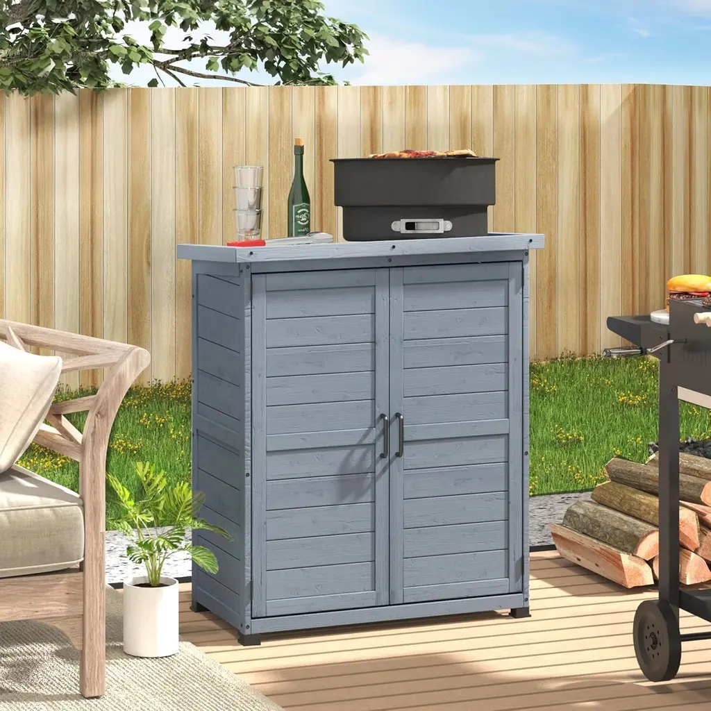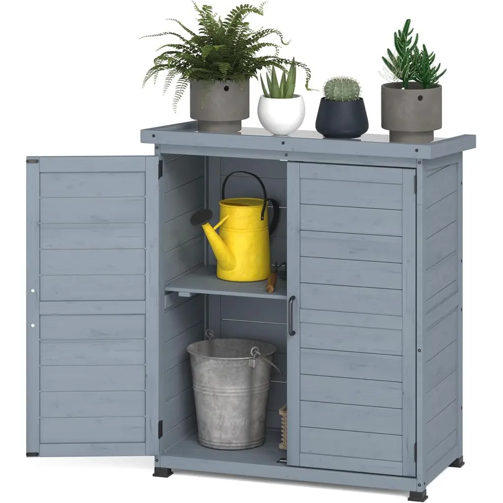 Aecojoy Outdoor Storage Cabinet Garden Potting Bench Table - Grey