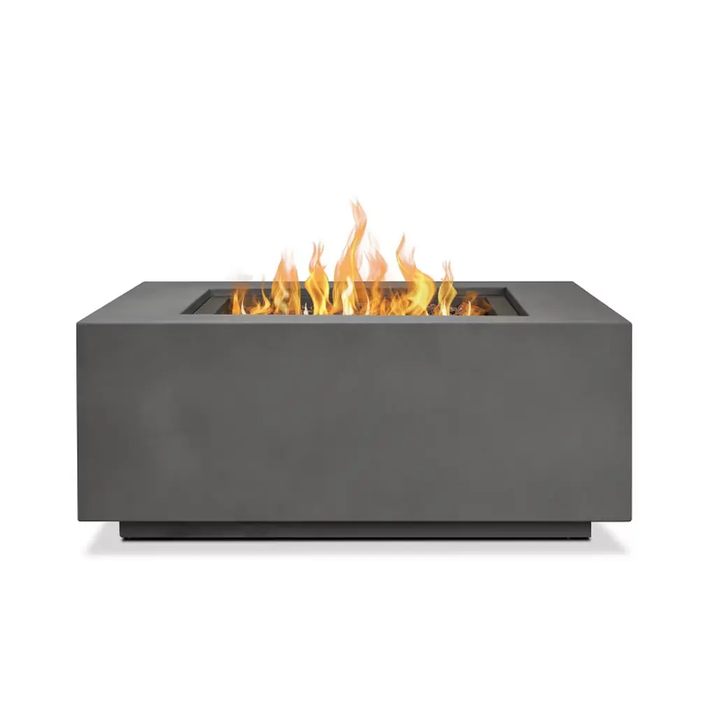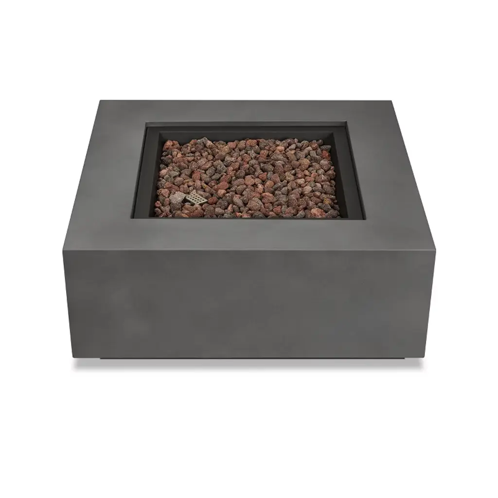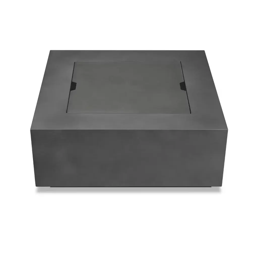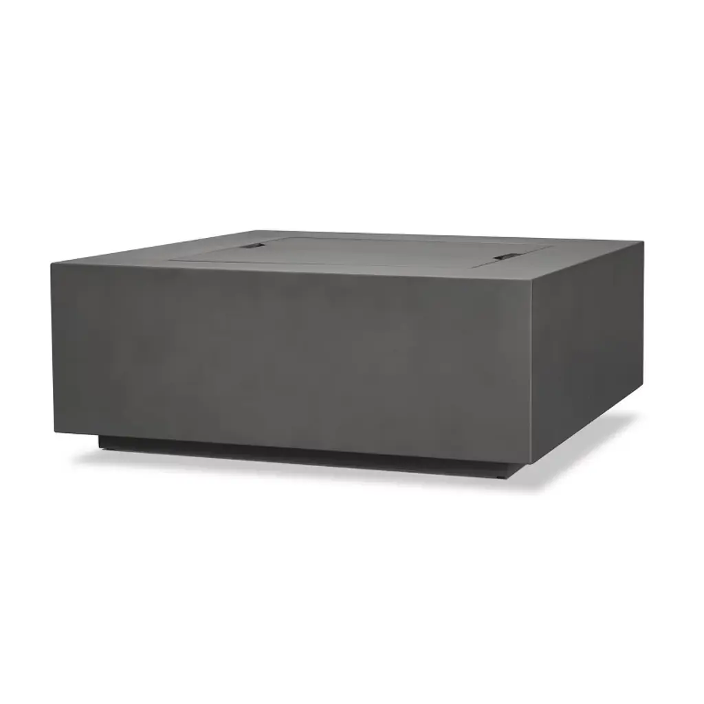 Aegean Square Fire Table With Ng Conversion Weather Slate - Real Flame: Steel Lid, Lava Rock, Protective Cover