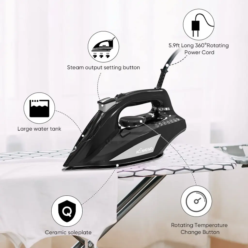 Aemego Steam Iron For Clothes Portable Anti Drip Clothes Iron Steam Black