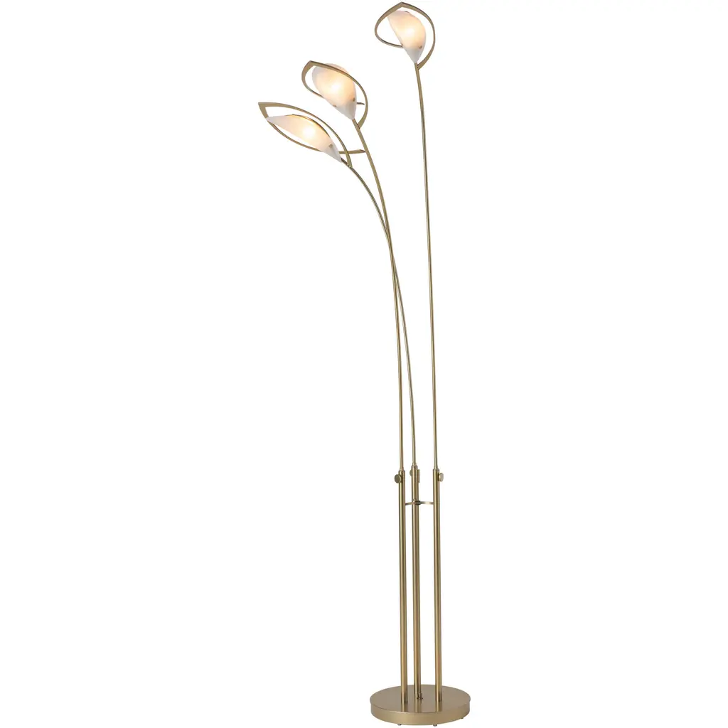 Three lovely stems culminating in beautiful white art glass flowers, the Aerial Torchiere designed by Ori Goldberg has a very botanical aesthetic. Light and airy, this adds a feminine touch while providing functional lighting with elegance. A vertical pole dimmer allows you to adjust the lamp's brightness.