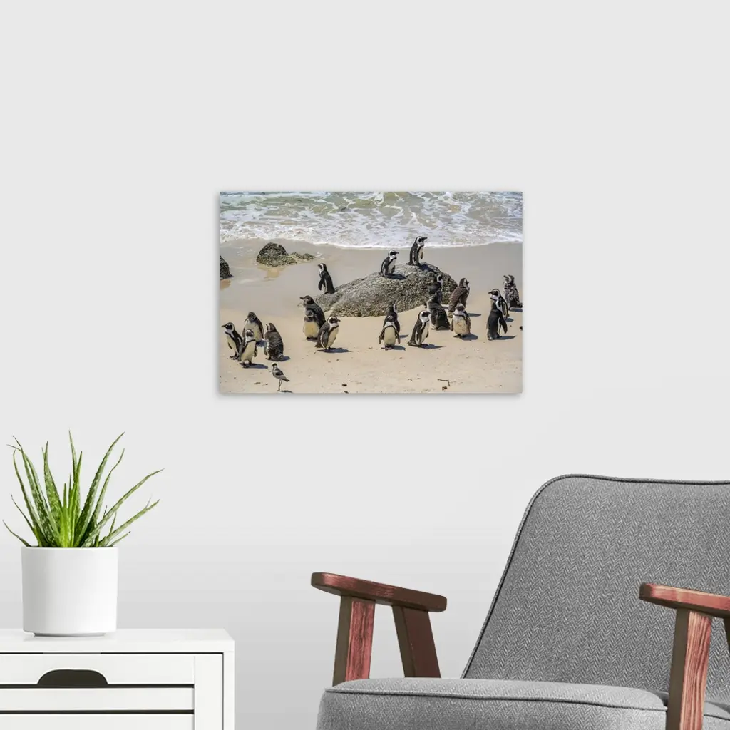 View of African penguins on Boulders Beach, Seaforth, Table Mountain National Park, Cape Town, Western Cape, South Africa, Africa