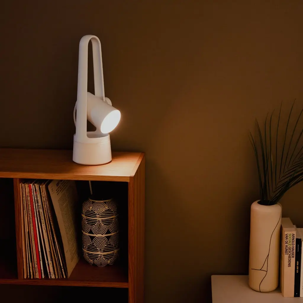 Stay productive wherever inspiration strikes with this mobile and versatile table light, a modern twist on the classic lantern. It’s crafted by Gantri®, a San Francisco-based studio that designs 3D-printed lighting made from plant-based materials.