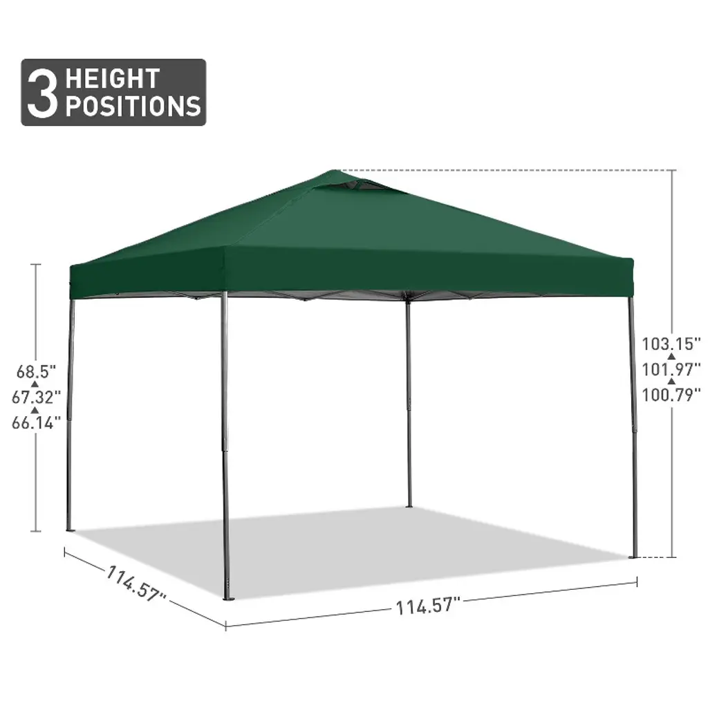 Color:Green Material: 210D Oxford PVC of Top Cover 300D Oxford Cloth of Carrying Bag. Steel Pipe: 20" x 20" x 0.5" Canopy Tent Size: 10' Lx 10' Wx 8.6'H
