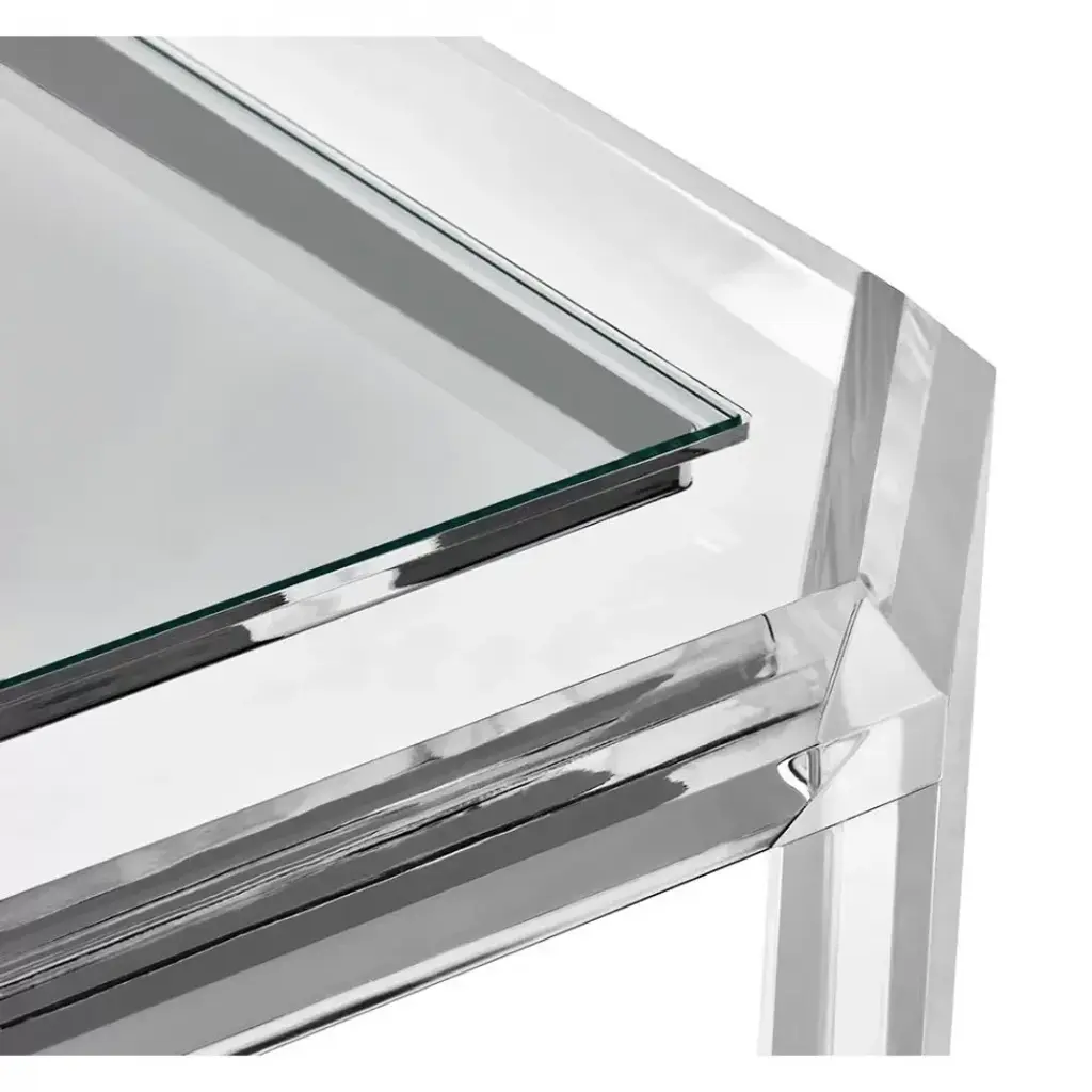 An architectural silhouette transforms the acrylic and glass Alden Occasional Table into a fabulous statement-making accent.