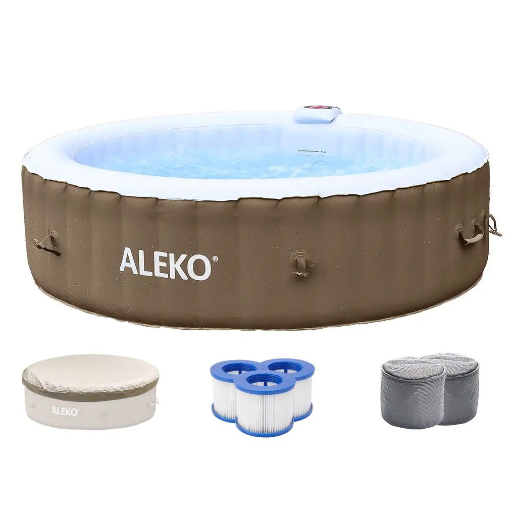 Aleko Round Inflatable Hot Tub With Cover 6 Person Brown And White - Brown