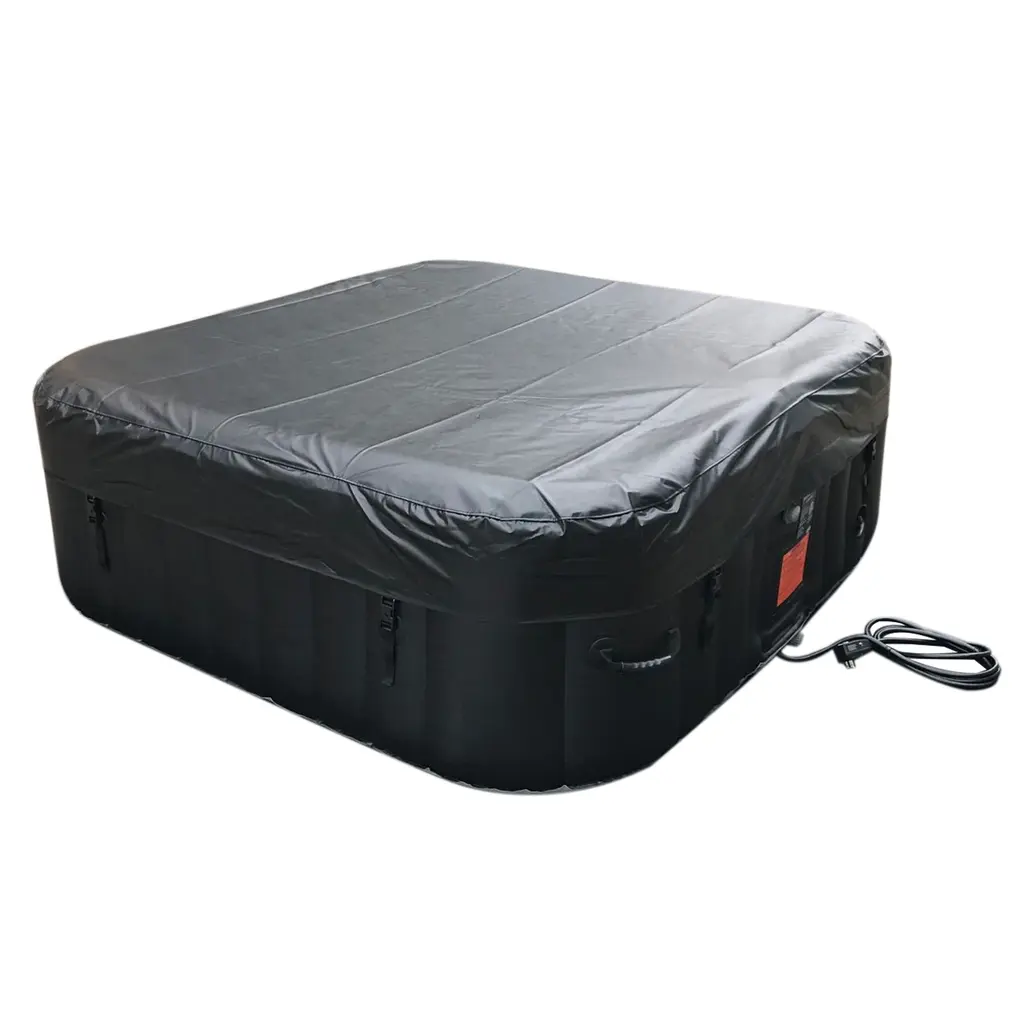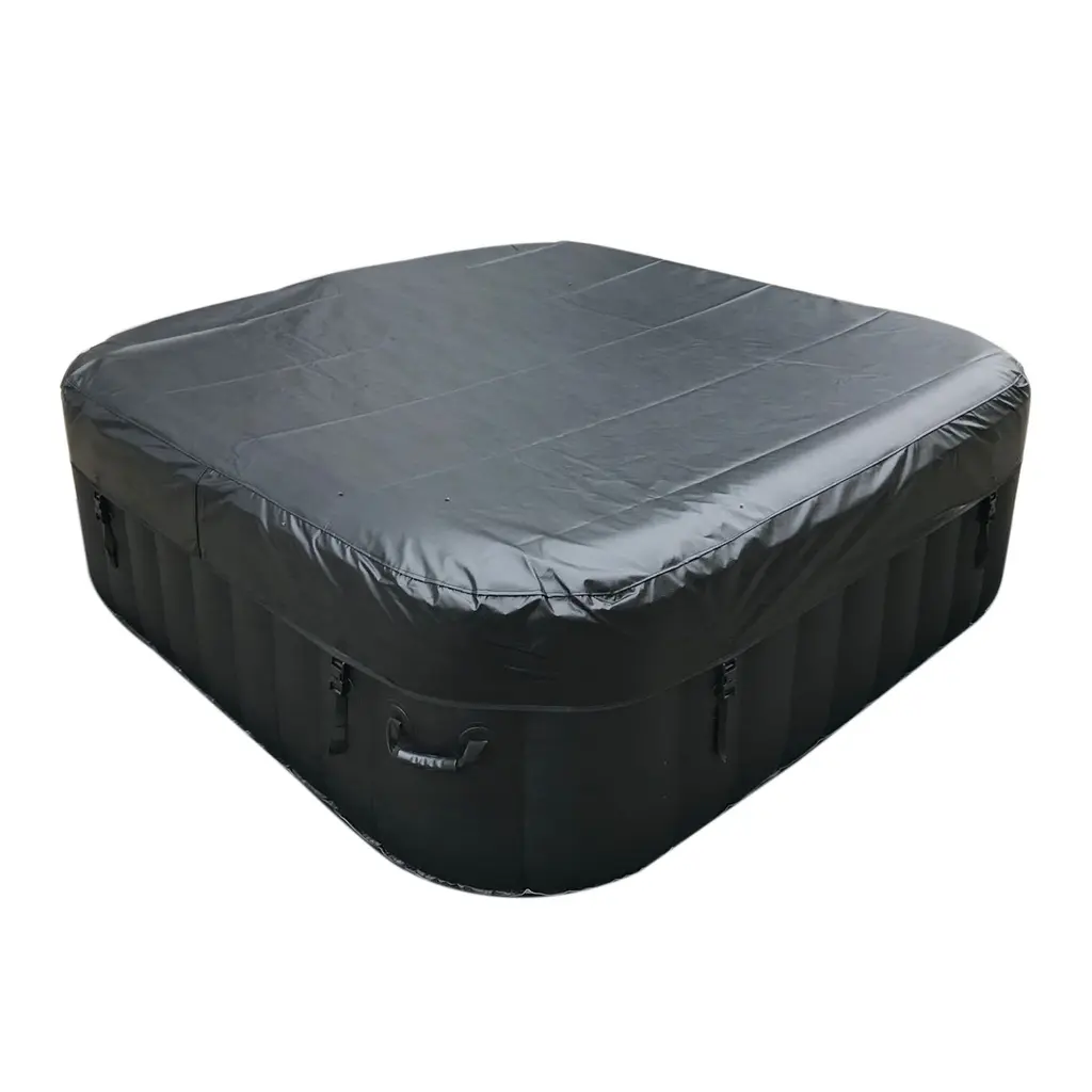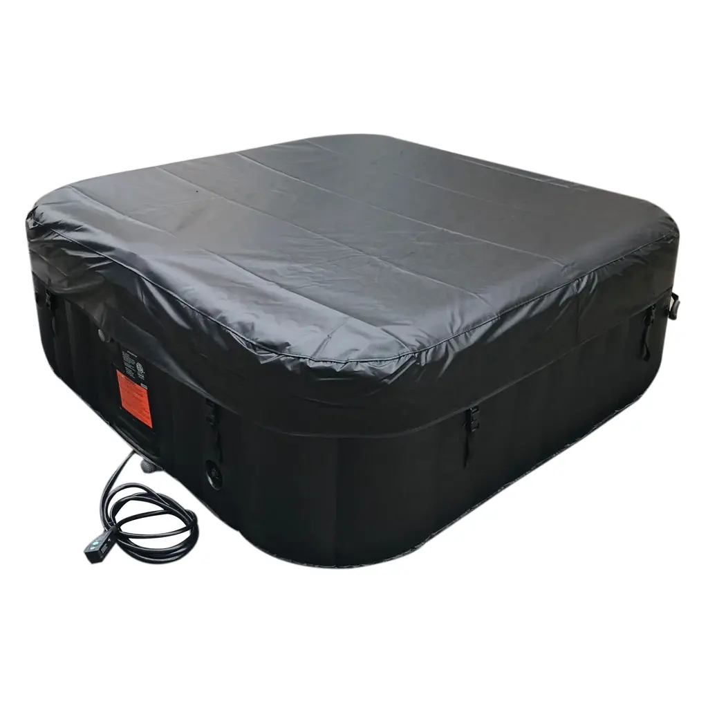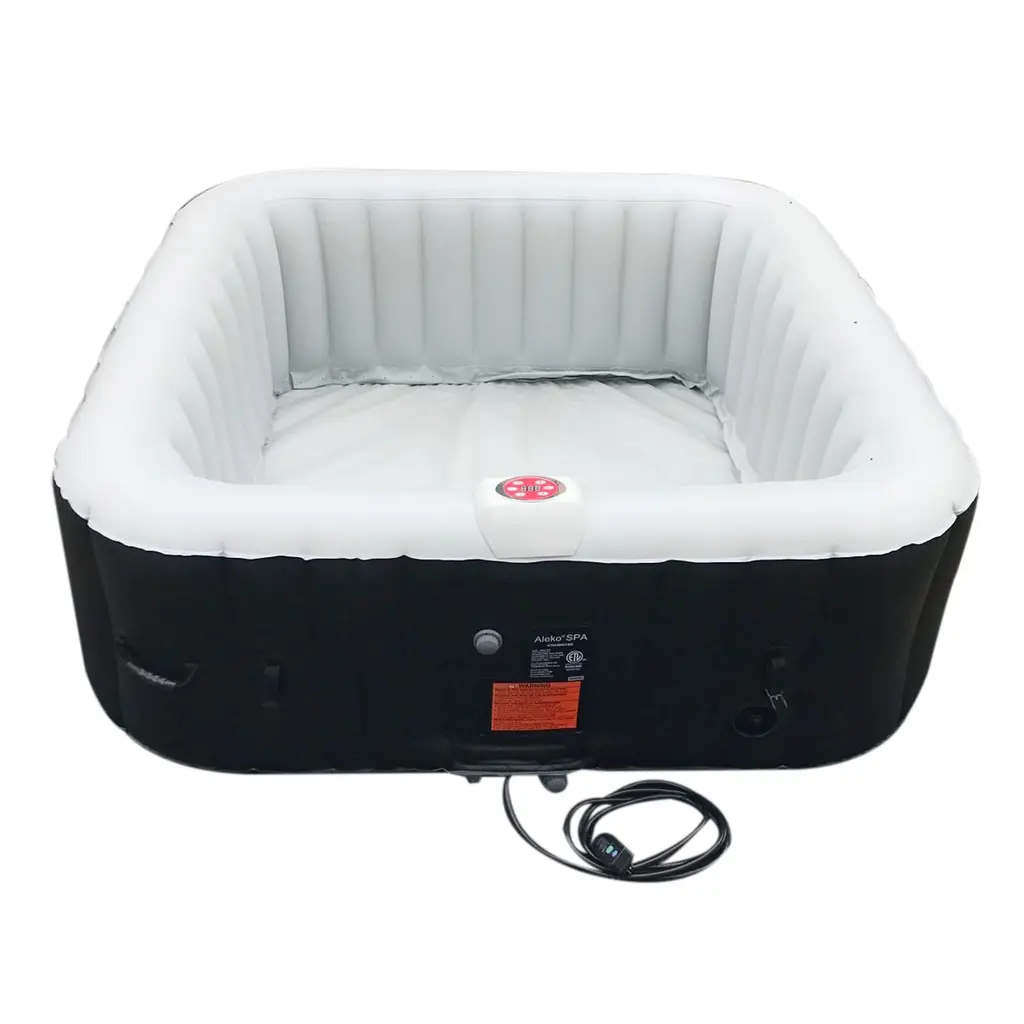 Aleko Square Inflatable Jetted 6 Person Hot Tub Spa With Cover - Black - Black And White