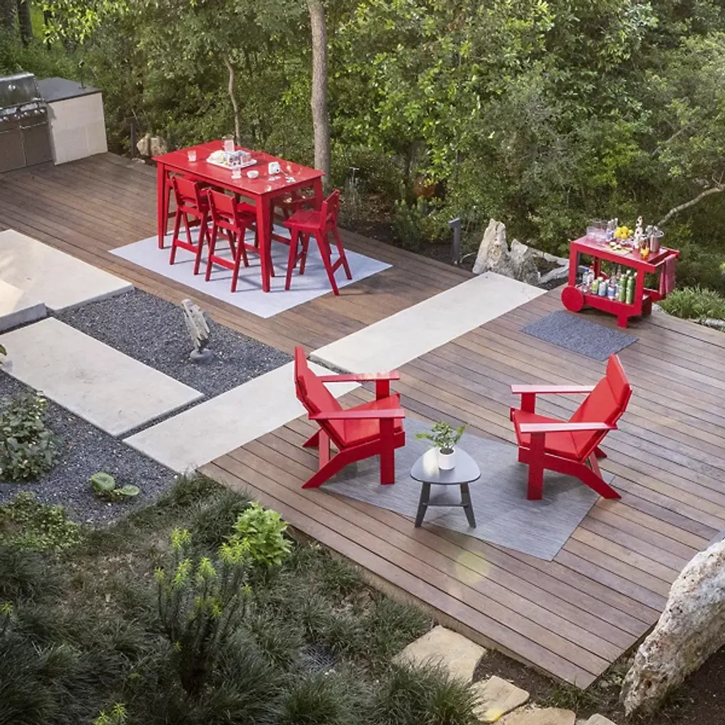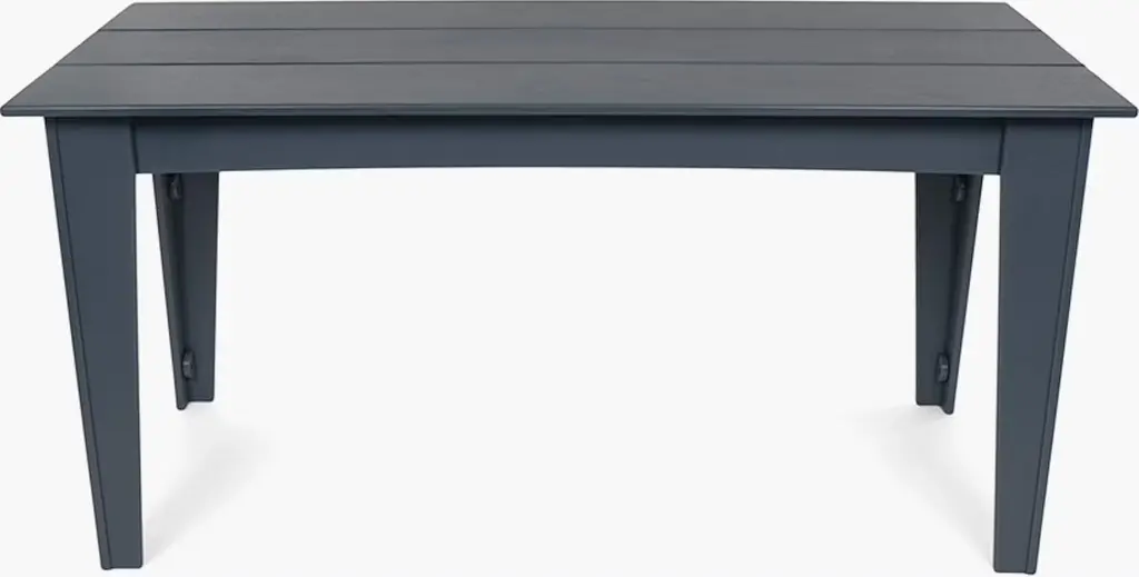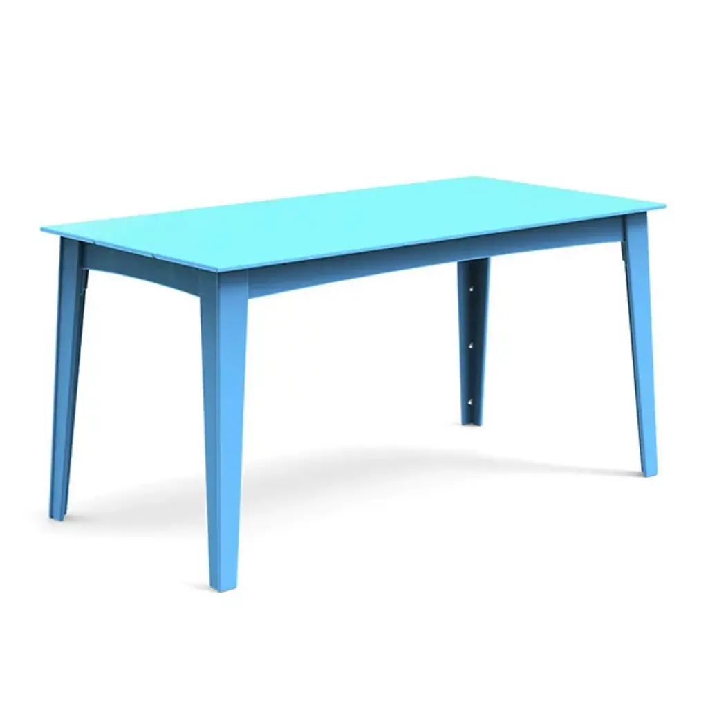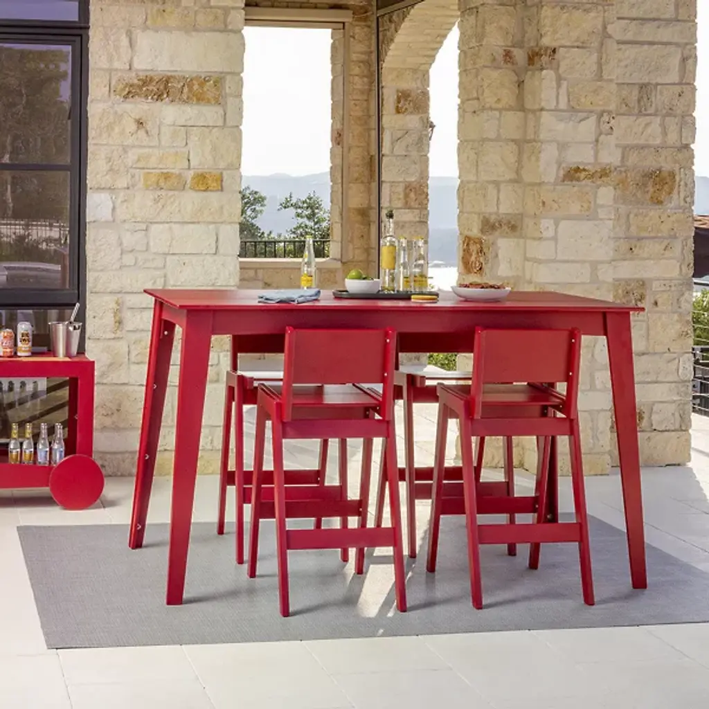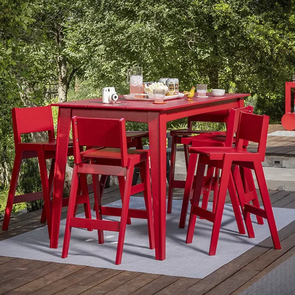 Take in the fresh, open fair while seated at the Alfresco Rectangular Outdoor Bar/Counter Table from Loll Designs. This table feels up-to-date in its uniform color and clean edges while feeling familiar with its slatted design. The slatted tabletop helps water or spills pass through for quick, continued use. The legs share a tidy silhouette that invites one to sit comfortably or mingle. Both the tabletop and the splayed legs share a high-density polyethylene construction that’s rugged and promotes color health. This polyethylene material promotes sustainability as it comes from recycled milk jugs.