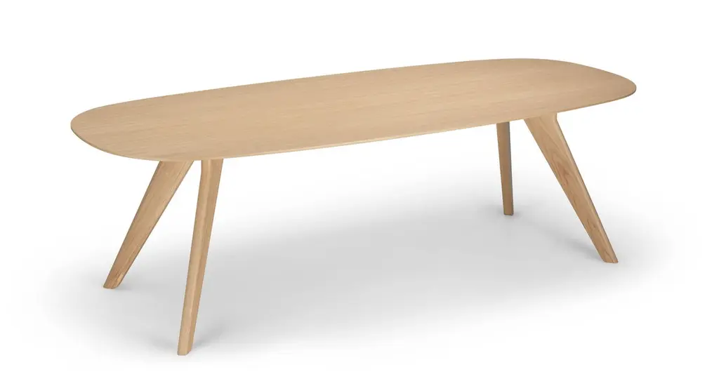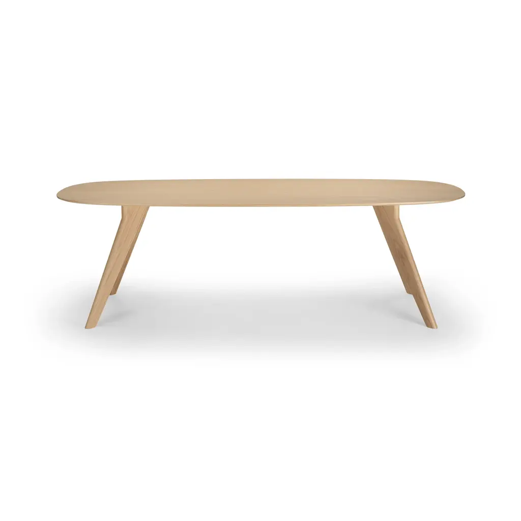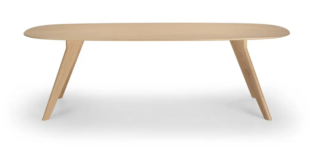 Alias AGO AG8 Oval Table with Natural Oak and Metal Frame in Lacquered Steel by Alfredo HäberliTable with structure composed of solid oak legs and metal frame in lacquered steel with the same finish of the top. Top in veneered MDF.Born in Buenos Aires in 1964, he moved to Zurich in 1977, where in 1988 he began working as curator and designer of numerous exhibitions at the Museum für Gestaltung. In 1991, he graduated in Industrial Design by the Höhere Schule für Gestaltung. In 1997 he designed for Alias SEC, a system of modular elements, and a range of objects under the Danese label. In subsequent years he designed for Alias legnoletto (2001) and segesta (2003), plein air (2007), stabiles (2009), cross table and tec (2011). the erice and enna chairs and the textile bed (2013), the ago table (2014). He lives and works in Zurich.Additional Information:Material: Oak, lacquered steel, metal frameWood finish: Natural oak (RV)Dimensions: 240 W x 100 D x 74 H cmAvailable in other wood finish options: Whitened oak (RVS), canaletto walnut (NCT), dark oak (RVT), ash grey oak (RC)Available in other color finish option: Black (V140)Available in various other options.