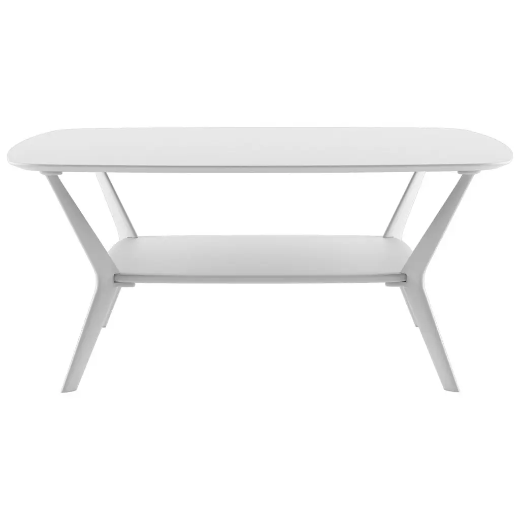 Alias B04 Biplane XS 95x95 Outdoor Table in White Top and Lacquered Frame by Alberto MedaLittle table for outdoor use with structure composed of 4 legs in die-cast aluminium with painted finishes, connected by shelf.Square top in white acrylic stone th. 15 mm and shelf in white acrylic stone th. 12 mm.Born in Lenno Tremezzina (Como), in 1945, he graduated in mechanical engineering from the Milan Polytechnic. In 1987 and 1989 he designed two historic chairs for Alias: lightlight and softlight. The former is on show in the permanent collection in the MoMA in New York. The first Alias chairs in the frame range date from 1994. These were followed in 2003 by frametable, in 2007 by the out collection teak, in 2009 by the biplane table and in 2011 hydrochiar. In 2013, the oscillating tilt mechanism was introduced on the plus versions of the rolling frame and meeting frame chairs, later to be enhanced by a new soft finish in 2015. He lives and works in Milan.Additional Information:Material: Textured lacquered aluminum, Acrylic stoneTop finish: White (PR01)Frame finish: White (A019)Dimensions: 95 W x 95 D x 35 H cmAvailable in other shape options: Rectangular, round, triangleAvailable in other size option: 80x80Available in other various options