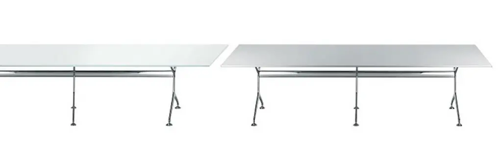 Alias Frametable 295XL in White Top and Polished Aluminium Frame by Alberto MedaFixed table with structure made of die-cast aluminium elements, with lacquered or polished finish.Top in: - Extra light tempered glass, thickness 12 mm (lying table top, no need for extra fixing)- Laminated alveolar aluminium (edge in grey polycarbonate), thickness 18 mm- Glass sandwich, thickness 16 mm (lying table top, no need for extra fixing)- Alveolar aluminium laminated with pre-composed oak veneer, thickness 18 mmBorn in Lenno Tremezzina (Como), in 1945, he graduated in mechanical engineering from the Milan Polytechnic. In 1987 and 1989 he designed two historic chairs for Alias: lightlight and softlight. The former is on show in the permanent collection in the MoMA in New York. The first Alias chairs in the frame range date from 1994. These were followed in 2003 by frametable, in 2007 by the out collection teak, in 2009 by the biplane table and in 2011 hydrochiar. In 2013, the oscillating tilt mechanism was introduced on the plus versions of the rolling frame and meeting frame chairs, later to be enhanced by a new soft finish in 2015. He lives and works in Milan.Additional Information:Material: Aluminium, laminateTop finish: White (L010)Frame finish: Polished (AB)Dimensions: 295 W x 120 D x 73.5 H cmAvailable in other material options: Glass, woodAvailable in other top finish options: Black (L006), anthracite (L005), tempered extra light glass (VTT), extra light (DB01), white (DB02), anthracite (DB03), black (DB05), natural oak (RV), ash grey oak (RC), whitened oak (RVS), dark oak (RVT)Available in other frame finish options: White (A019), black (A011), graphite grey (A022), sand (A047), light grey (A051), “cipria” sand (A039), coral red (A041), aubergine (A042)Available in other various options