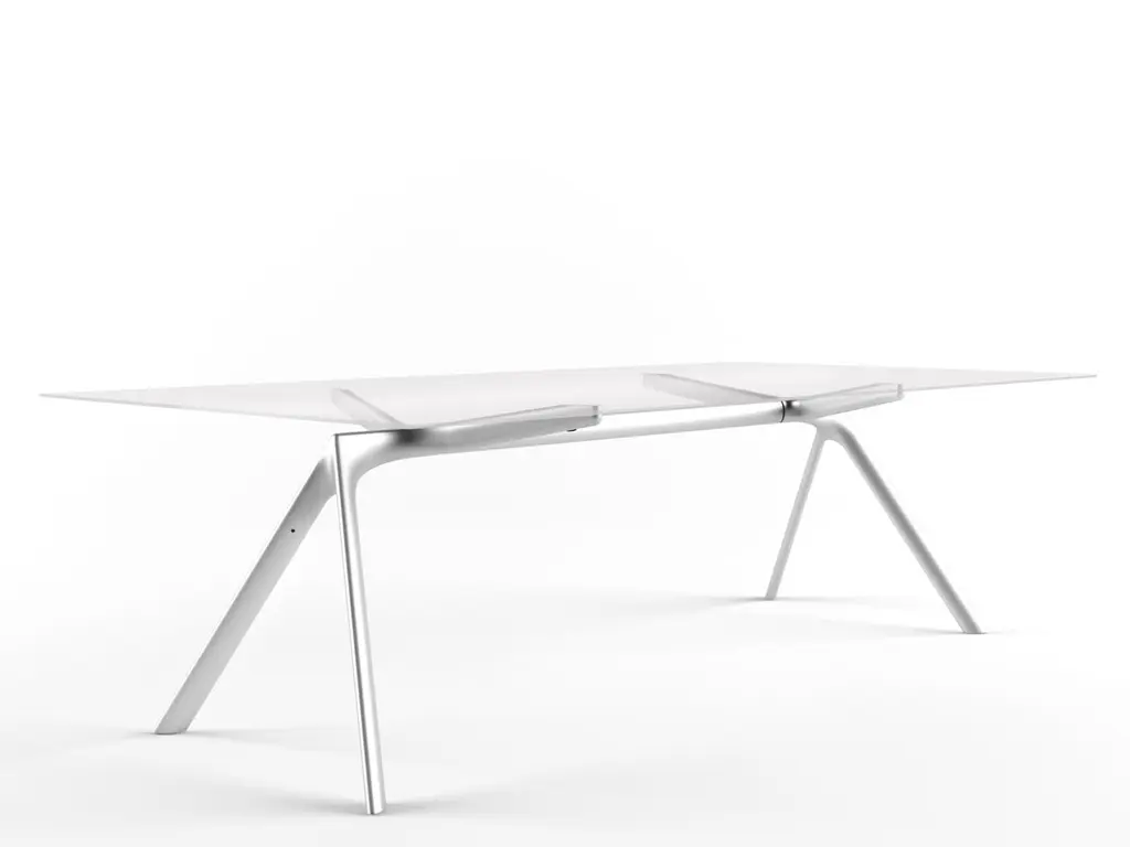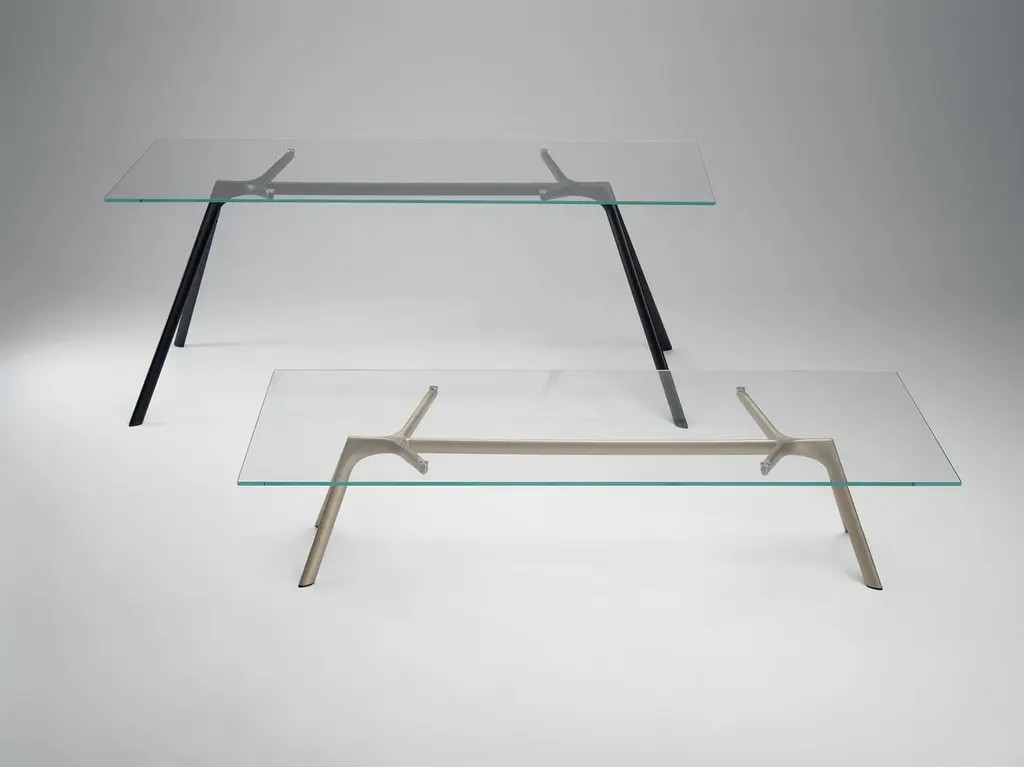 Alias Small 45A Dry Table in Glass Top with Anodised Silver Lacquered Aluminium Frame by Alberto MedaTable with structure made of lacquered aluminium elements. Top in extra light tempered glass, thickness 10 mm. Available with predisposition for cable hole (on request).Born in Lenno Tremezzina (Como), in 1945, he graduated in mechanical engineering from the Milan Polytechnic. In 1987 and 1989 he designed two historic chairs for Alias: lightlight and softlight. The former is on show in the permanent collection in the MoMA in New York. The first Alias chairs in the frame range date from 1994. These were followed in 2003 by frametable, in 2007 by the out collection teak, in 2009 by the biplane table and in 2011 hydrochiar. In 2013, the oscillating tilt mechanism was introduced on the plus versions of the rolling frame and meeting frame chairs, later to be enhanced by a new soft finish in 2015. He lives and works in Milan.Additional Information:Material: Glass, metallic lacquered aluminiumTop finish: Tempered extra light glass (VTT)Frame finish: Anodised silver (A048)Dimensions: 160 W x 80 D x 72 H cmAvailable in other material option: Textured lacquered aluminiumAvailable in other size option: 180x80Available in other frame finish options: White (A019), black (A011), graphite grey (A022), sand (A047), light grey (A051), anodised gold (A049), anodised lead (A050)Available in other various options