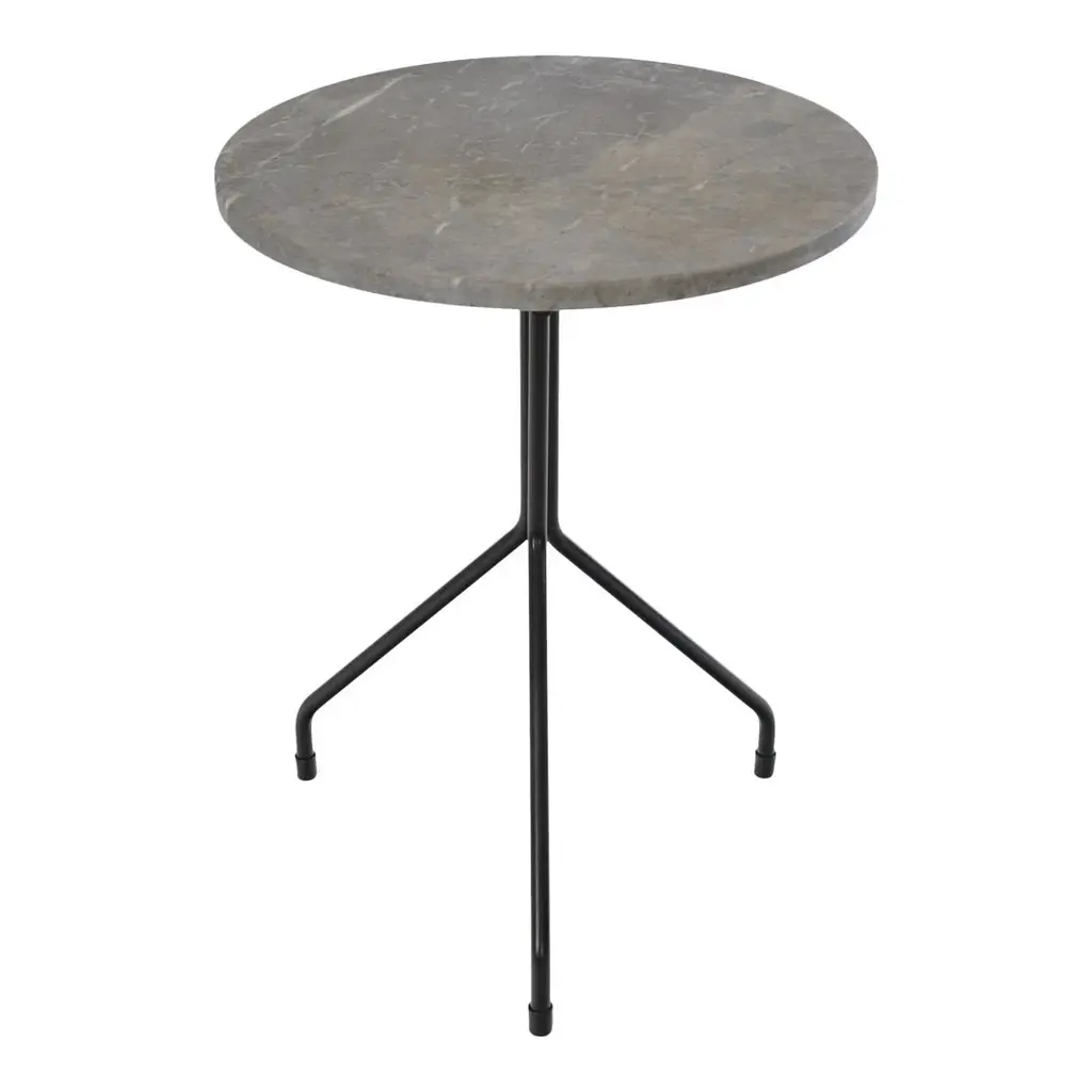 Frame made in powder coated steel. Marble tops are to be placed directly on the metal frame. Table tops in Oak wood (ø35 cm), Carrara Marble, Black Marquina, Brown Emperador, Grey Italian, Green Indio will exhibit natural variations in terms of colour, drawings and patterns characteristic for each type of marble. As for Carrara Marble, small cracks can sometimes be found on the polished surface. This phenomenon known as “taroli" is a natural characteristic of the stone, which cannot be eliminated completely.