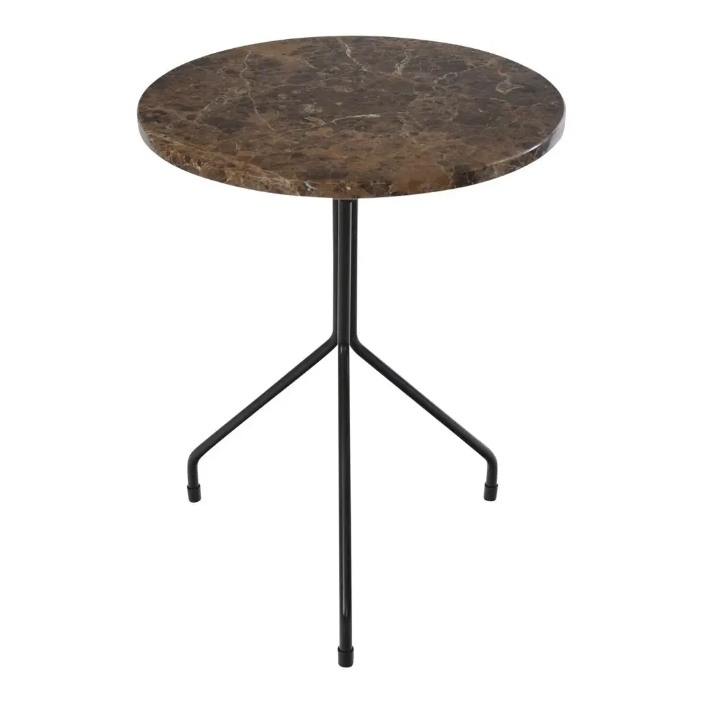 Frame made in powder coated steel. Marble tops are to be placed directly on the metal frame. Table tops in Oak wood (ø35 cm), Carrara Marble, Black Marquina, Brown Emperador, Grey Italian, Green Indio will exhibit natural variations in terms of colour, drawings and patterns characteristic for each type of marble. As for Carrara Marble, small cracks can sometimes be found on the polished surface. This phenomenon known as “taroli" is a natural characteristic of the stone, which cannot be eliminated completely.