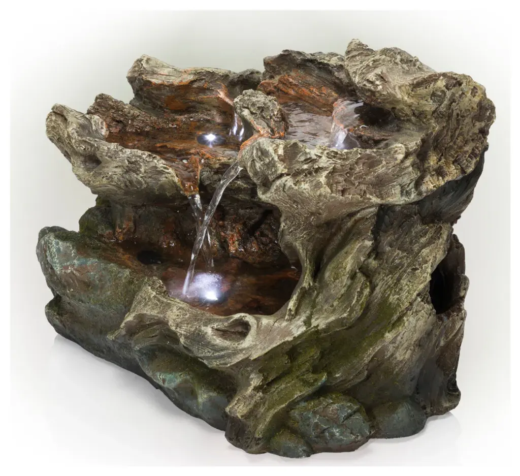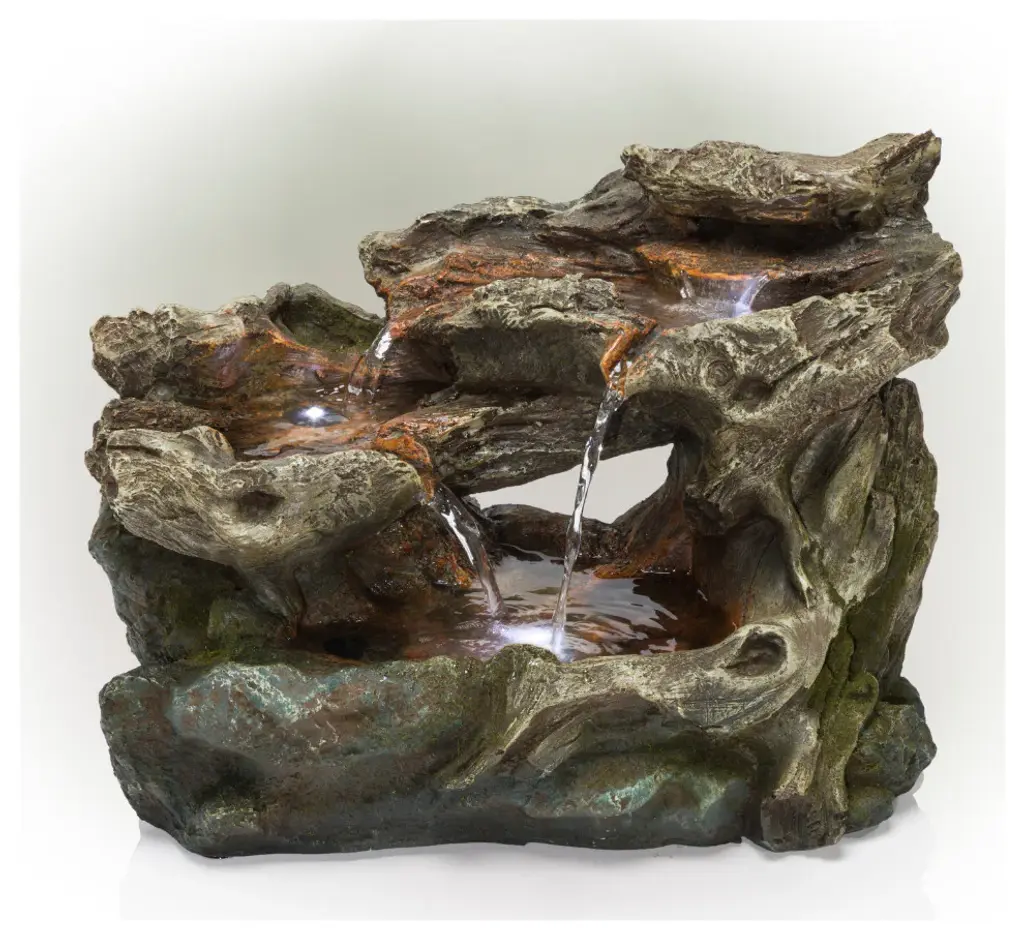 Create a peaceful, meditative atmosphere even in an urban jungle as you rejuvenate with our natural style fountains. You will feel like you are sitting next to a majestic mountain stream in the great outdoors all while relaxing in your own lush garden. The sound of birds frolicking to the running water will create the tranquil environment of everyone''s envy. With the water gently cascading over natural-looking stone, Alpines cascading fountain is sure to be a vivid focal point to your outdoor decor.- Measures 14"L x 8"W x 10"H, Made of Resin, Stone Powder, Fiberglass, Plastic- Can be used indoor/outdoor- Made of durable materials that will perfect your home, yard, and garden decor.- The design adds a natural look, while the relaxing, gentle water falling helps create a tranquil atmosphere.- Includes a 1-year manufacturer''s warranty for worry-free operation.
