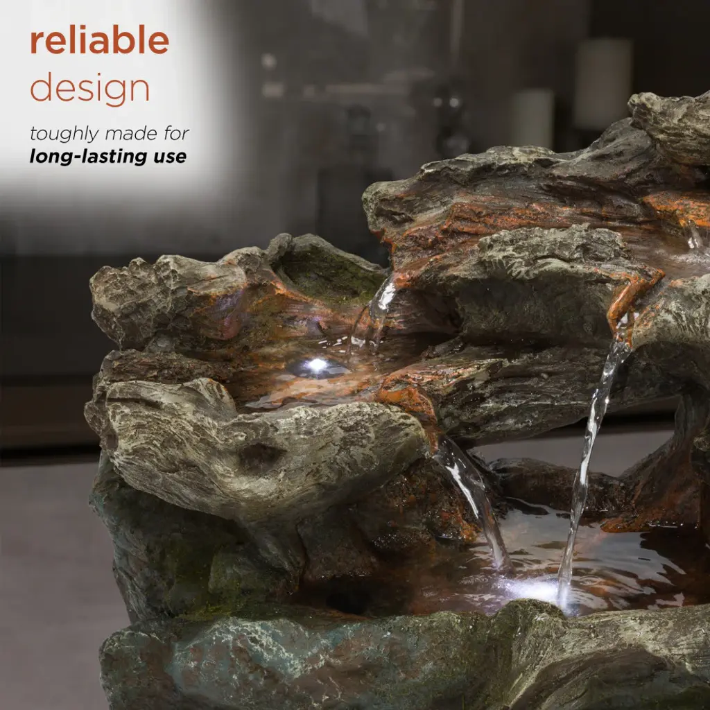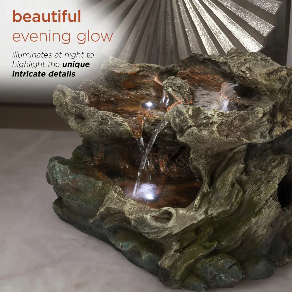 Alpine 3 Tier Rainforest Tabletop Fountain With Led Lights, 10"