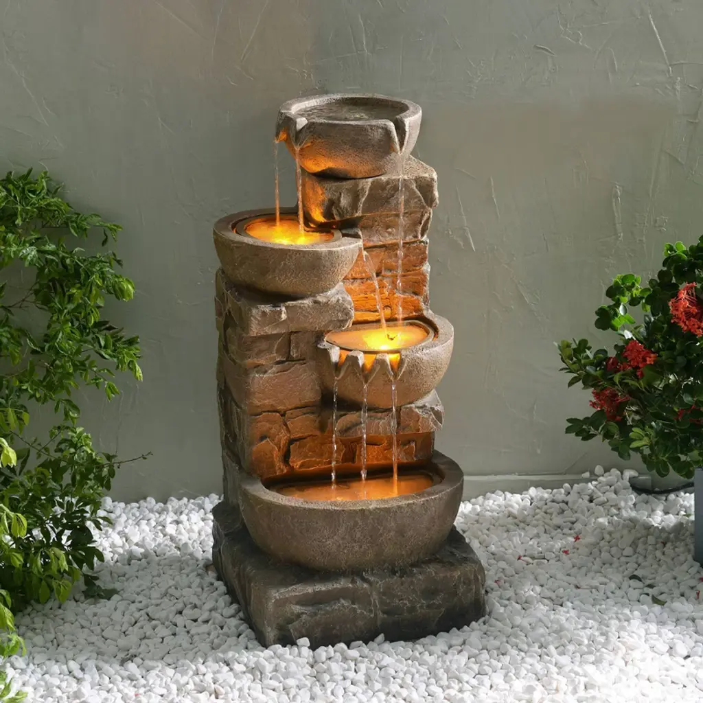 Transform your indoor or outdoor space into a tranquil retreat with the Alpine Corporation 5-Tier Cascading Fountain with Warm White LED Lights. Crafted with meticulous attention to detail, this fountain measures 9"L x 7"W x 19"H, making it a stunning centerpiece for your garden, patio, or interior decor. The five cascading tiers create a soothing water flow, adding an element of relaxation to your surroundings. The fountain fits seamlessly into various spaces without overwhelming the setting. The warm white LED lights enhance the visual appeal, casting a soft glow that transforms your environment day or night. Whether placed outdoors to elevate your garden or indoors as a captivating accent, this versatile 5-Tier Cascading Fountain adds a touch of serenity and sophistication to any space. With Alpine's 1-year warranty, you can Shop With Assurance and Buy With Confidence.