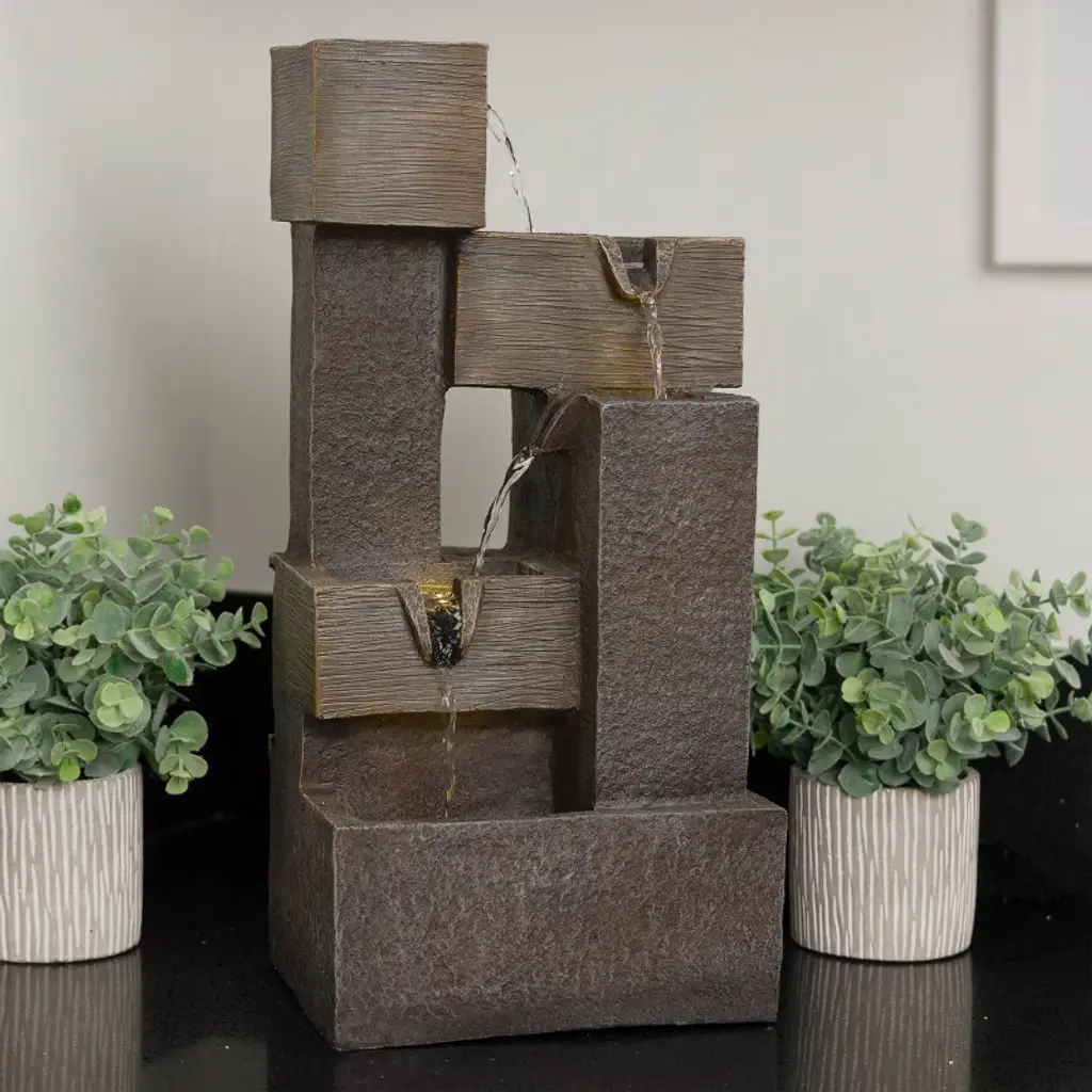 Alpine Corporation 19" Multi-tier Cascading Tabletop Fountain: Electric Polyresin Decor With Led Lights