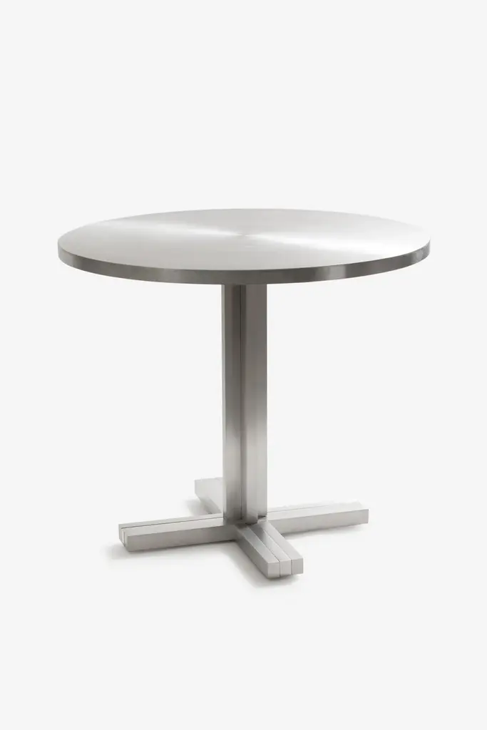 Alumina Round Table by Studio GameiroDimensions: Ø 70 x H 75 cm.Materials: Aluminum and steel.Available in two different finishes: brushed or sandblasted. Please contact us.Studio Gameiro is an innovative, multidisciplinary, and design-focused agency that specializes in exploring relationships between traditional artisanship, sustainable design, and bespoke solutions for interiors, lighting design, furniture design, and architecture. We are passionate about promoting local artistry, designing with context, and finding solutions to complex briefs, and spatial and structural challenges.We experiment and establish concepts using tone, materiality, and warmth, and have a strong belief in rooting our designs in a contextual analysis of place. We believe that the future of architecture is about balancing contemporary, functional design with sustainably sourced materials and preserving, protecting, and celebrating local craft and culture. From our base in Lisbon, we have projects across Western Europe, and we search for clients and projects with the transformative potential to create new spaces and territories that fit within our ethos, celebrating local craft, bridging disciplines, and exploring contemporary notions of design.