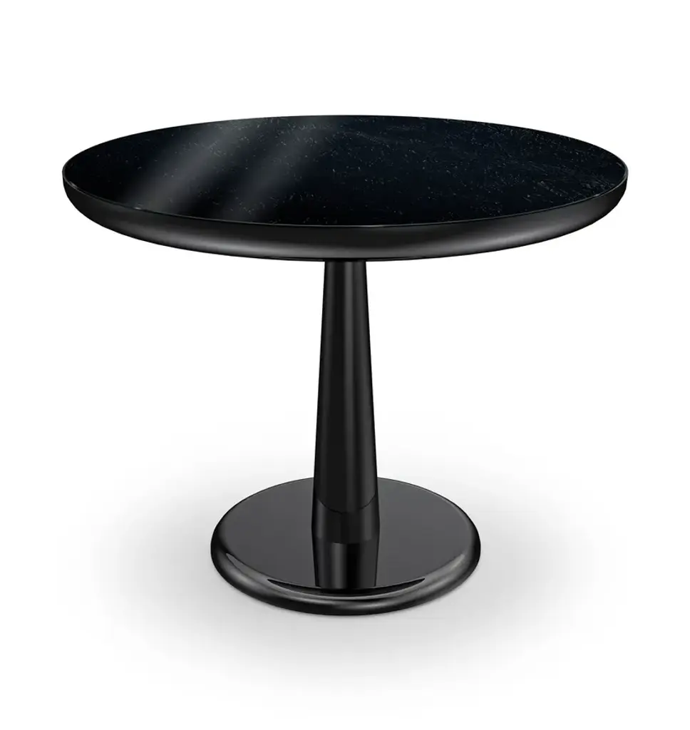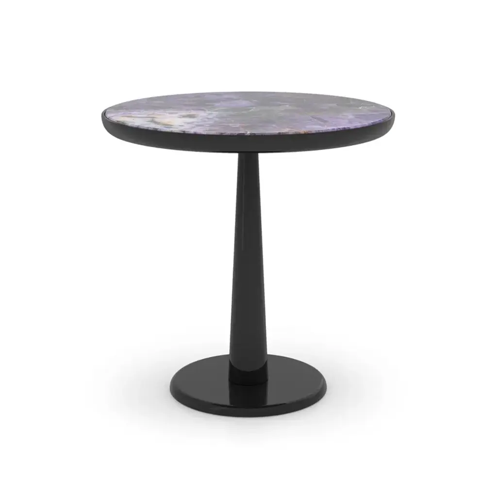 Amaretto is a table with pedestal in lacquered steel. Top in foam glass.