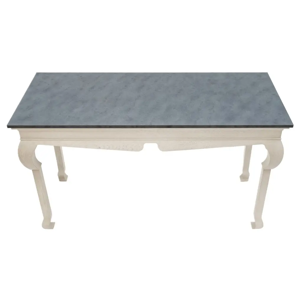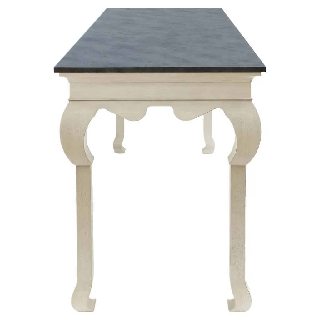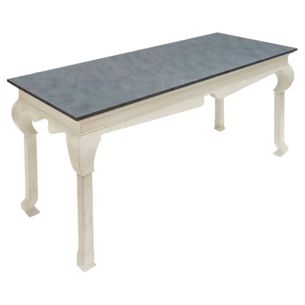 Furniture should be more than just functional; it should tell a story, exude character, and reflect the soul of a space. This white-painted hooked-leg console does all that and more. With its gracefully curved legs, it brings a touch of whimsical elegance to any room, making it a standout piece that demands attention. The faux-painted top, meticulously crafted to mimic the rich texture and depth of grey stone, offsets a stunning surface that’s both practical and beautiful.