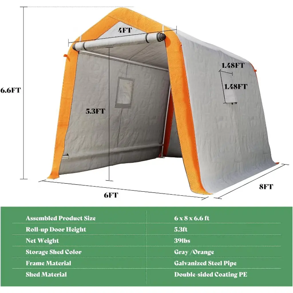 Amerlife 6X8x6.6 Ft Portable Storage Shelter, Heavy Duty Outdoor Shed With 2 Windows, Zipper Door