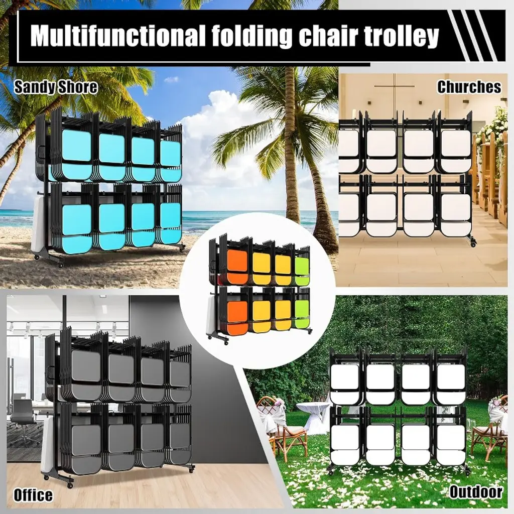 Amerlife Folding Chair Rack, Holds Tables Or Chairs, Heavy-duty Cart With Wheels