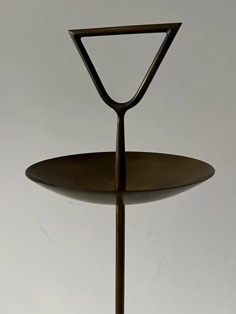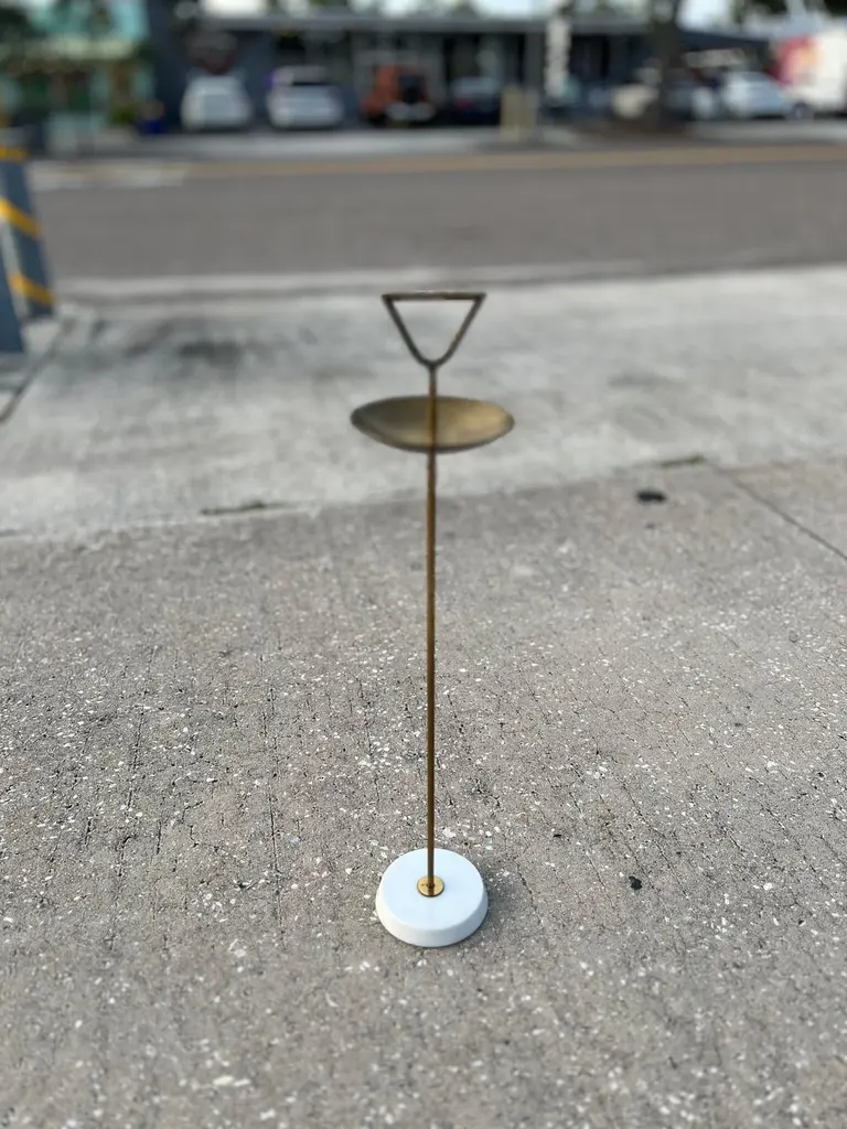 A stylish and elegant Italian cigarette table ca' 1950's. Made of brass and a marble base.