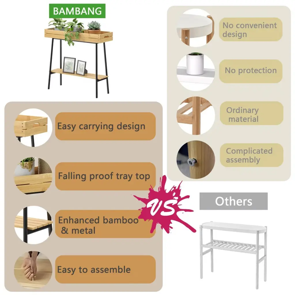 Elevate your space with our Bamboo Wooden Table with Metal Leg sharmonious blend of natural warmth and industrial strength, designed to keep your essentials organized while adding a touch of understated style. Whether in a living room, bedroom, home office, or entryway, this table marries the organic charm of bamboo with the durability of metal, creating a versatile storage solution that as functional as it is visually appealing.