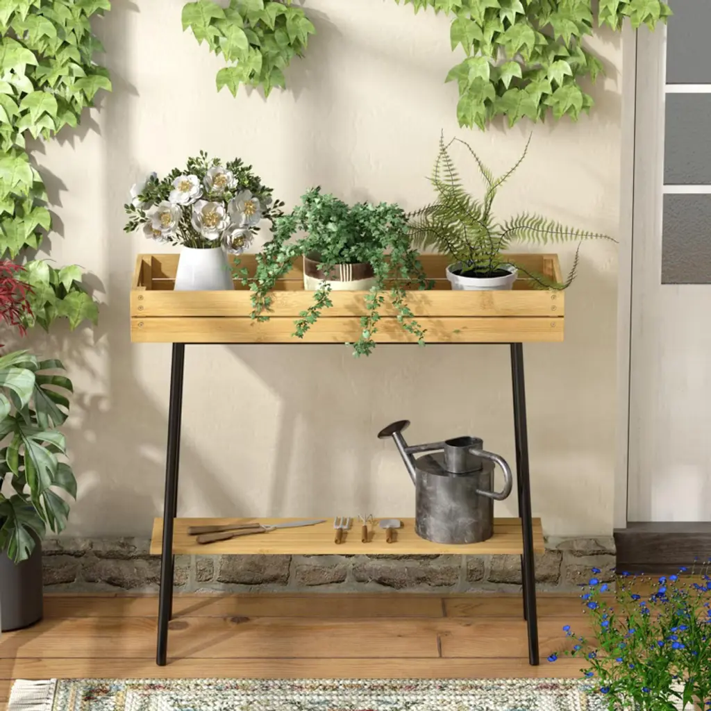 And Wood Table With Metal Legs, Suitable For Storing Items, Plant Flower Racks - Natura