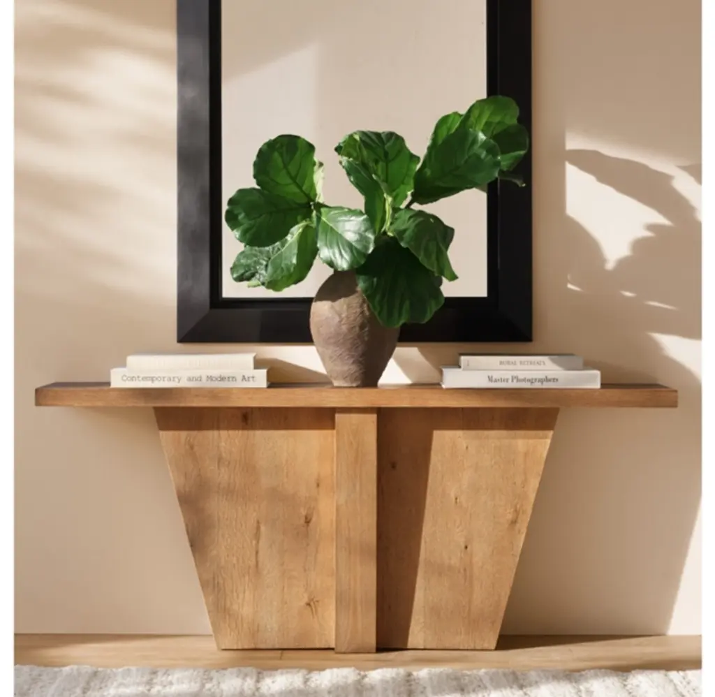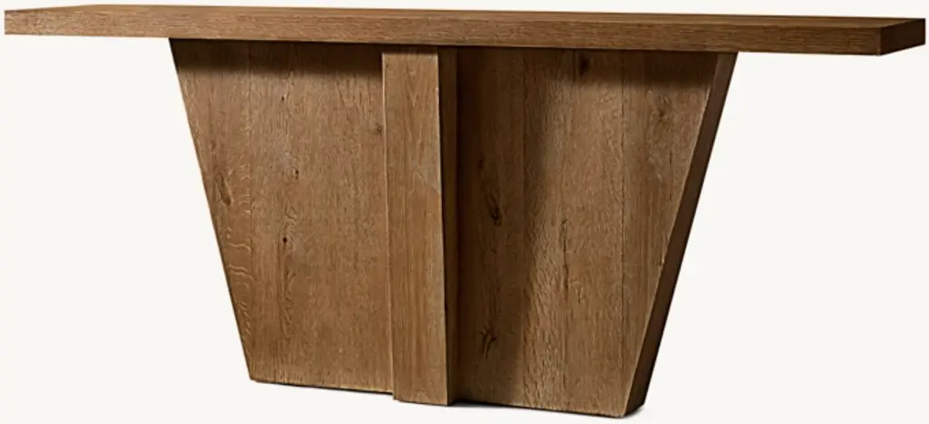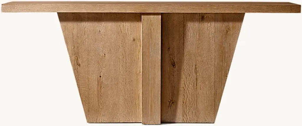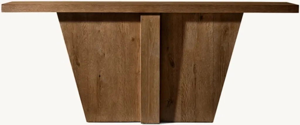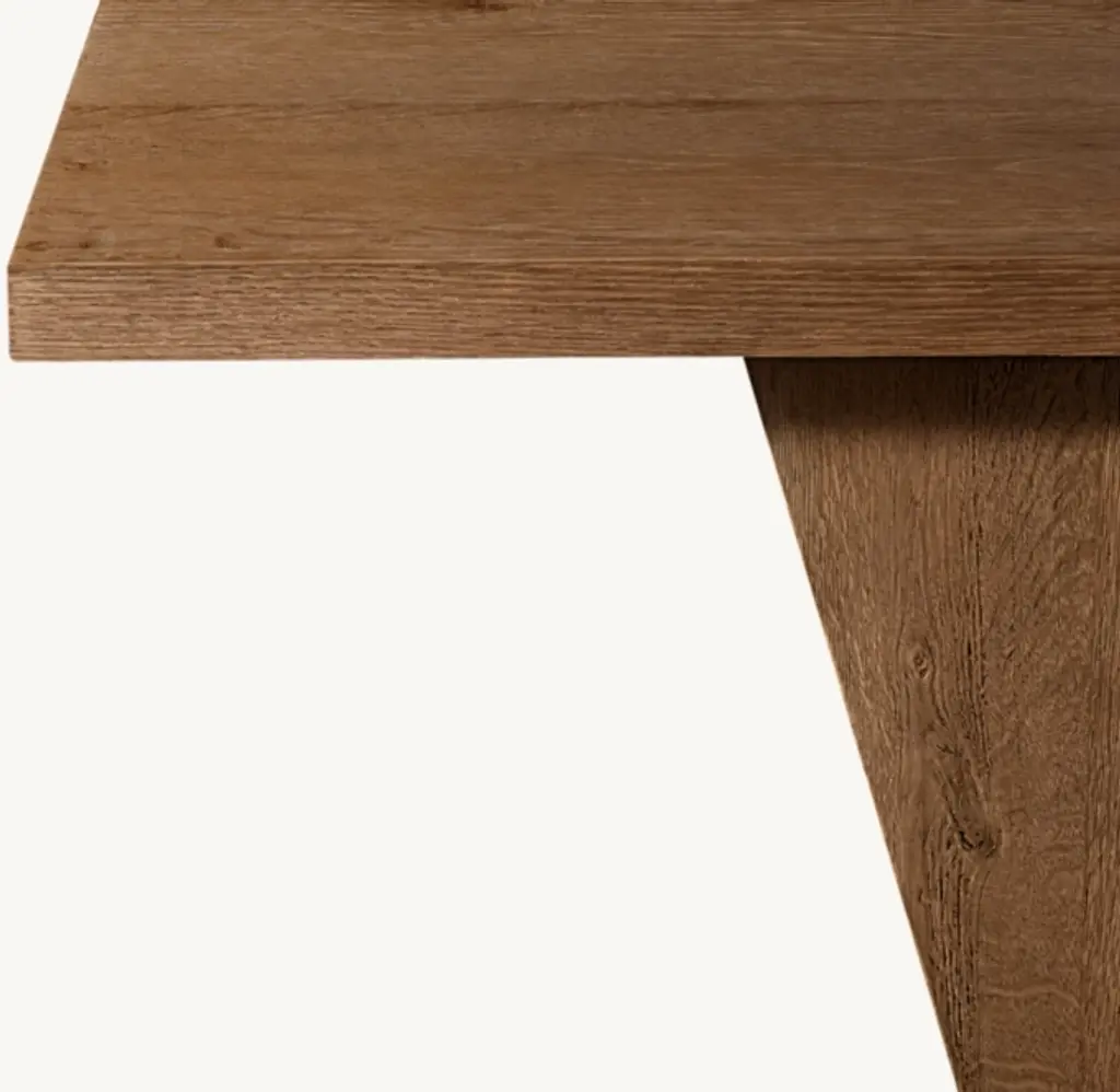 Our collection by California designer Ron Mann evokes the bold architecture of 1970s postmodernism. Handcrafted of wire-brushed American white oak, intersecting wood planks form the table's dramatically angular base, bringing a spare and sculptural sensibility.SHOP THE ENTIRE COLLECTION
