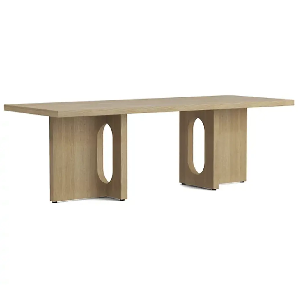 Contemporary, straightforward, and daringly durable. The Androgyne Lounge Table from Audo Copenhagen, formerly known as Menu, is the perfect place to gather around and store books, pictures, or knick-knacks beneath. It was designed by Norwegian architect and designer Danielle Siggerud, who crafted the table for Audo Copenhagen's former showroom café, mixing a simple silhouette with the luxury of refined materials. The angular bases feature rounded cutouts, supporting a flat rectangular top, celebrating careful craftsmanship, and complementing a range of modern settings, while plastic glides on the bottom of each base ensure it won’t mar your floors.
