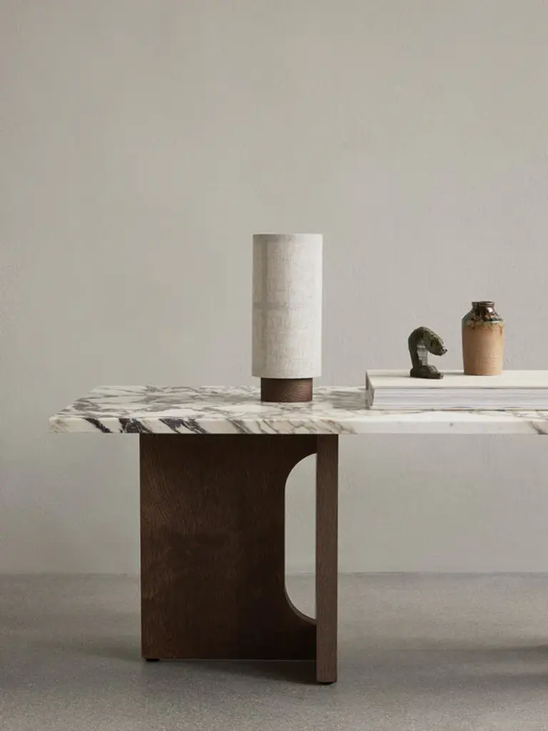 Originally developed by Norwegian architect and designer Danielle Siggerud as a modern and versatile table for Audo’s former showroom cafe? The Androgyne Collection profiles simple silhouettes and refined materials. Celebrating craftsmanship and wood, the Androgyne Lounge Table is versioned in natural or dark stained oak or walnut, as well as with the option of a kunis breccia stone or calacatta viola marble tabletop. With a shape and function made for everyday settings, the versatile, modernist design makes it possible to use as both a lounge table or bench for piles of books or statement decorations.