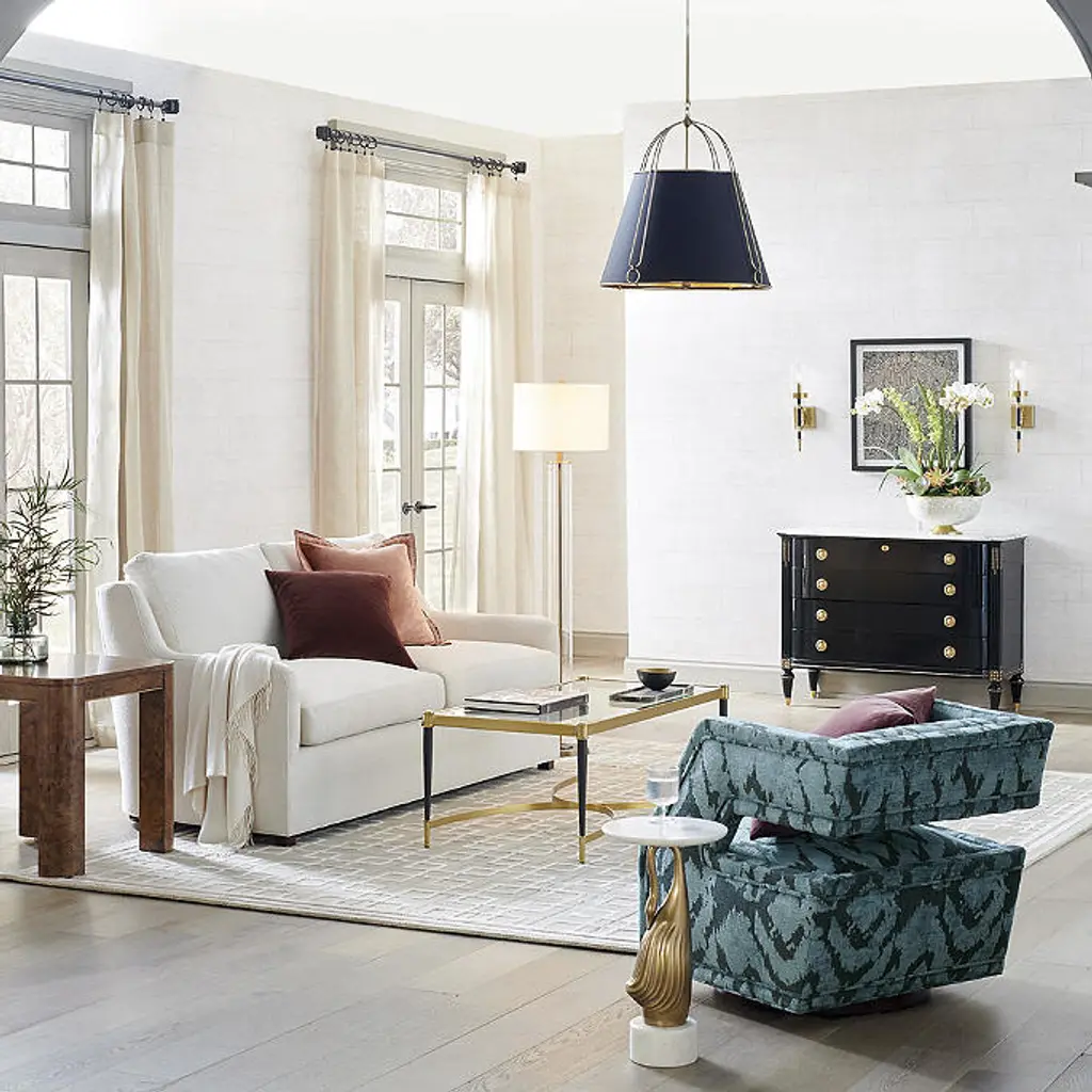 Our Angelina Occasional Tables add a touch of modern style to any space. Crafted of iron, each table is topped with tempered glass to create a handsome complement to any seating arrangement. Iron base with Matte Black and Brass finish Tempered glass top with a beveled edge Adjustable levelers on feet Indoor use Coordinates with Angeline Bar Cart & Angelina Console To prevent injuries or damage to item, recommended team lift (two or more people) for furniture placement Arrives assembled Imported A Frontgate exclusive. At Frontgate, our primary focus is quality. We guarantee that every product we sell will stand up to the supreme test – our customers' satisfaction. To learn more about our policies, visit our Shipping & Processing, Returns & Exchanges and Warranty & Price Guarantee pages.