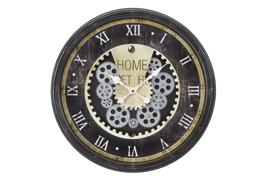 This table clock draws inspiration from old-town London decor, boasting a black rectangular silhouette, white Roman numerals, and a cluster of golden gears that operate silently within a glass casing. Place it on your desk, shelf, tabletop, or mantel to add a burst of steampunk style while ensuring you can easily keep an eye on the time.
