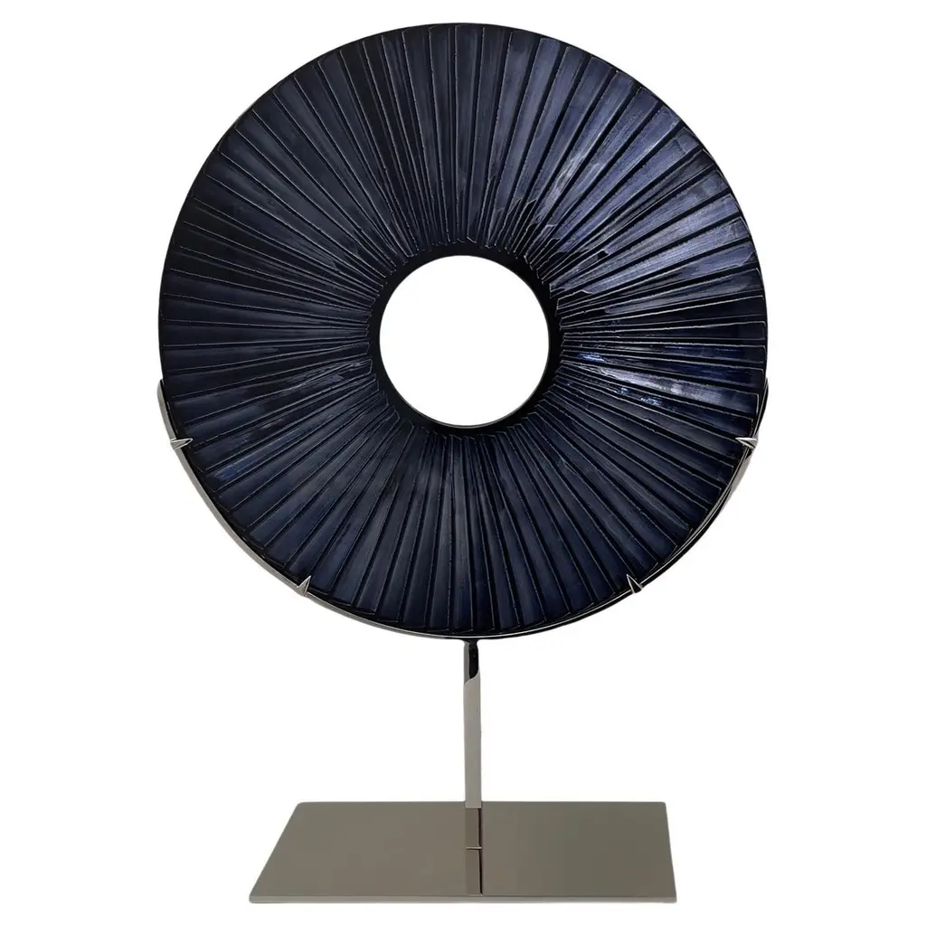 This sophisticated circle table accent is a unique large abstract modern sculpture made from textured and distressed wood on a square base. Crafted with expert carving on its wood ring design, this piece is finished in a muted natural brown for an antique feel. Add this work of art to table tops throughout your home for an instant transitional touch.