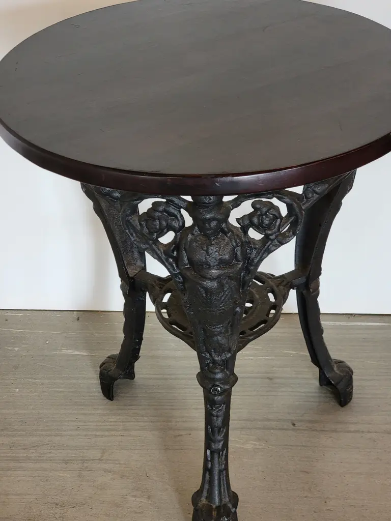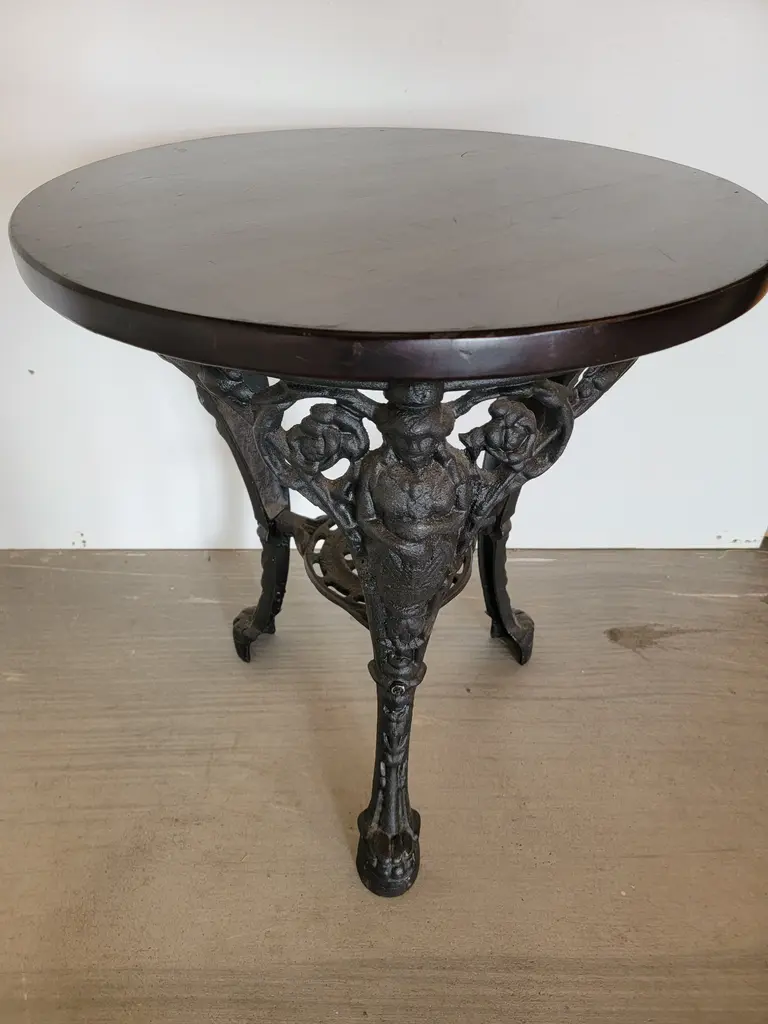 Antique Cast Iron English Pub Table With Thick Wood Top