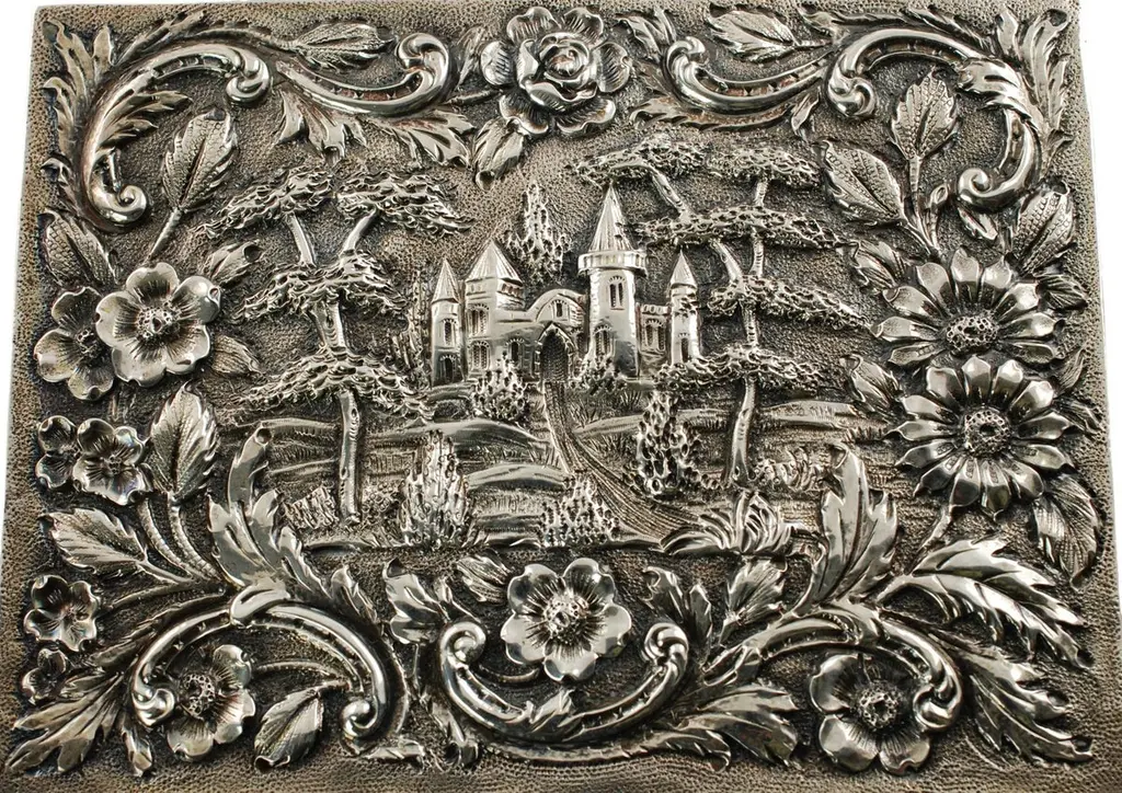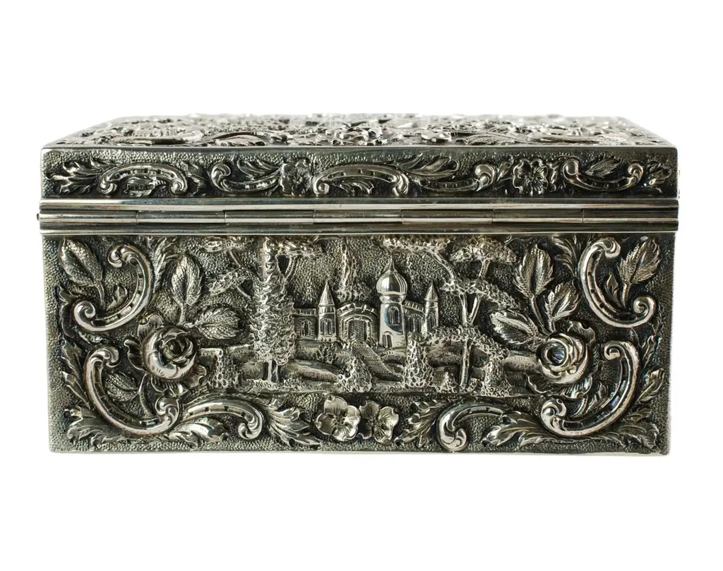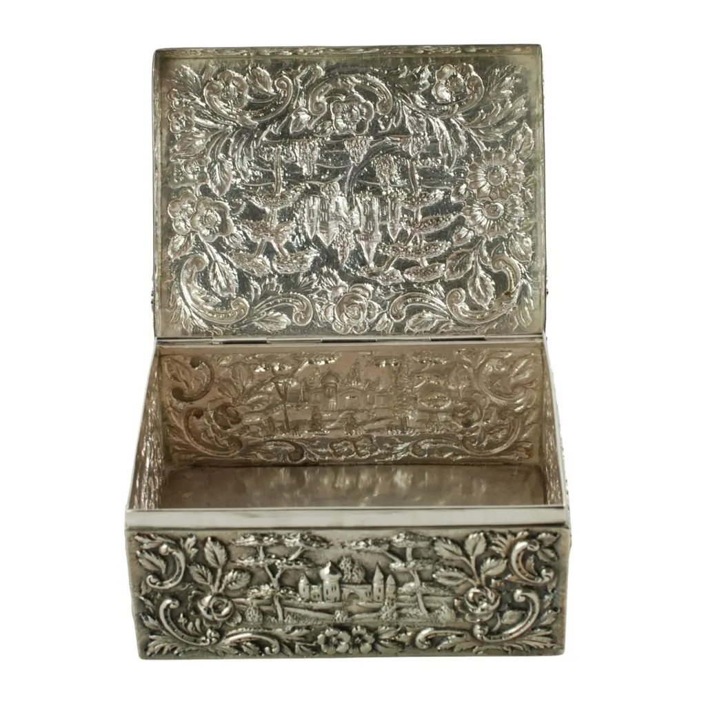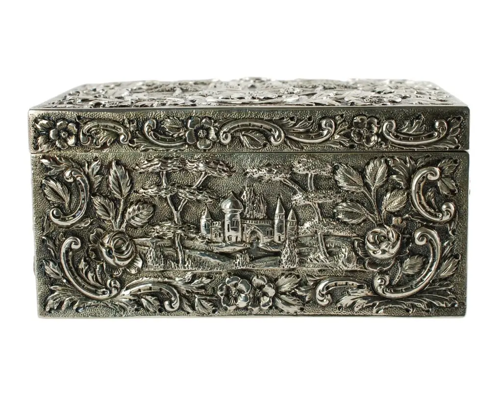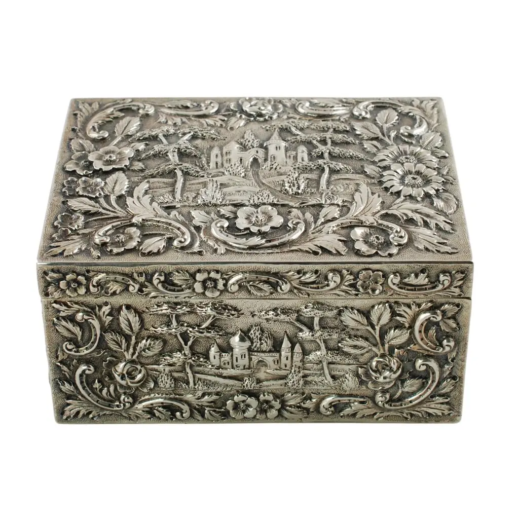 Antique Loring Andrews Repoussé Sterling Silver Castle Pattern Table Box