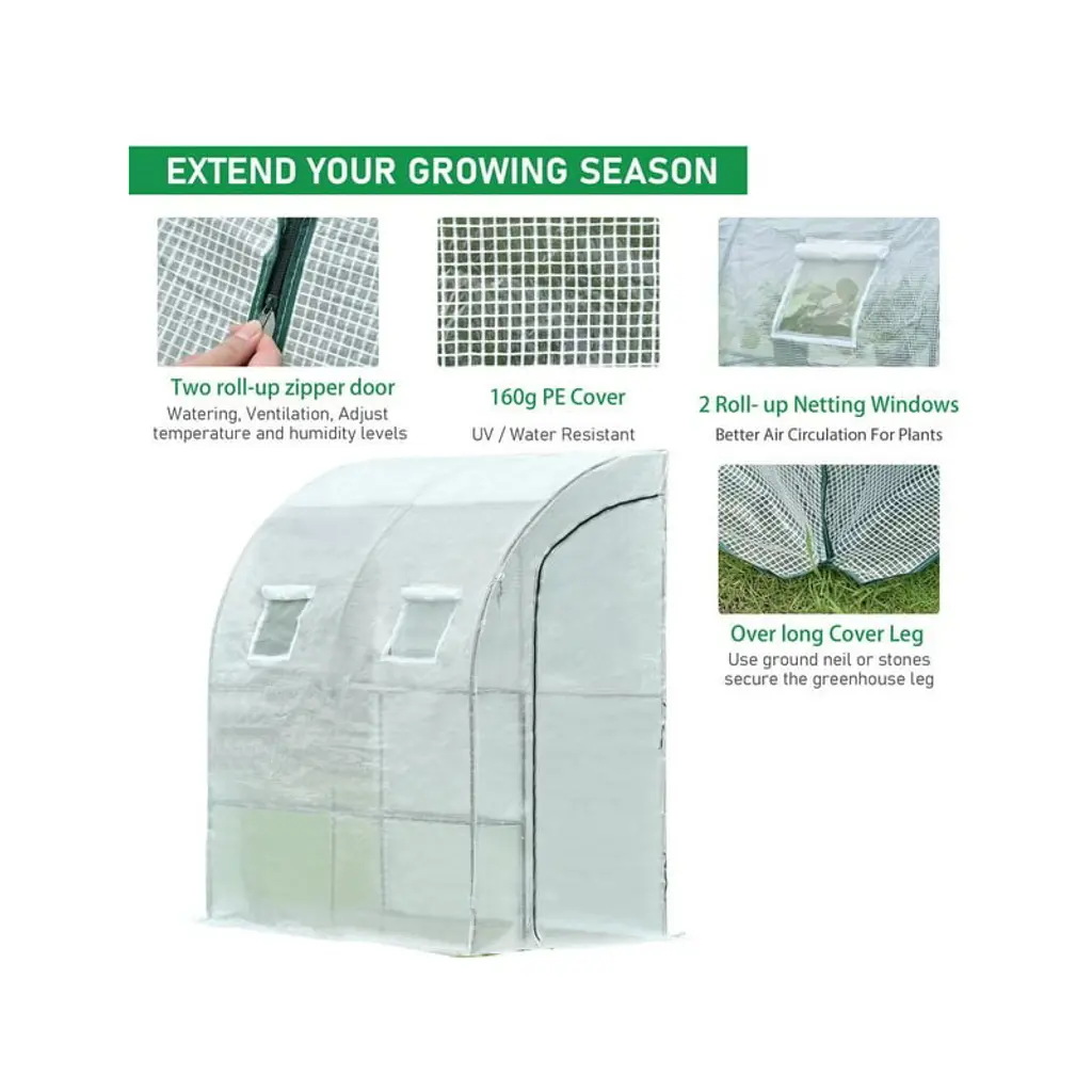 Aoodor 6.3ft. X 3.3ft. X 7.2ft. Walk-in Greenhouse Lean To Portable Wall Two Zipper Door-white
