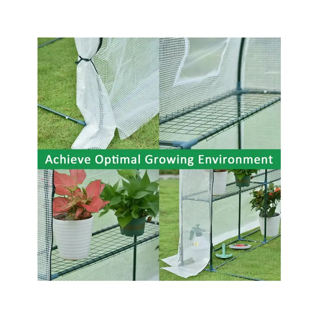 Aoodor 6.7ft. x 3.3ft. x 7.2ft. Outdoor Walk-in Greenhouse Lean to Portable Wall Two Doors. Aoodor's walk-in greenhouse boasts a stable design with rust-resistant tubes. With three levels of shelving, there is plenty of space for your plants. Ideal for seeds, small plants, and tools, it provides ample space for efficient and comfortable gardening.