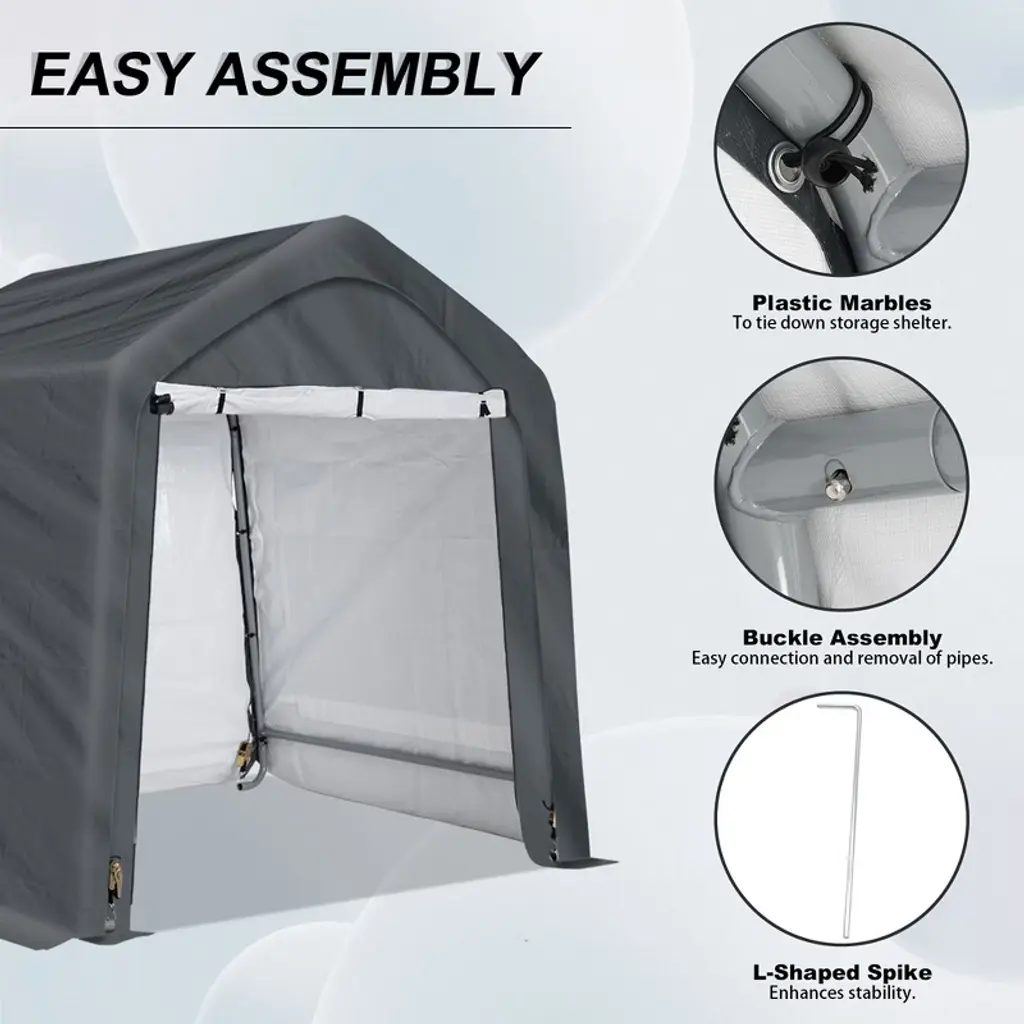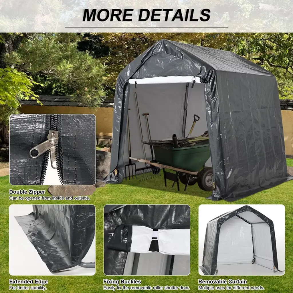 Aoodor 6 X 6 Ft Heavy Duty Storage Shelter, Portable Shed Carport With Roll-up Zipper Door ,Waterproof And Uv Resistant